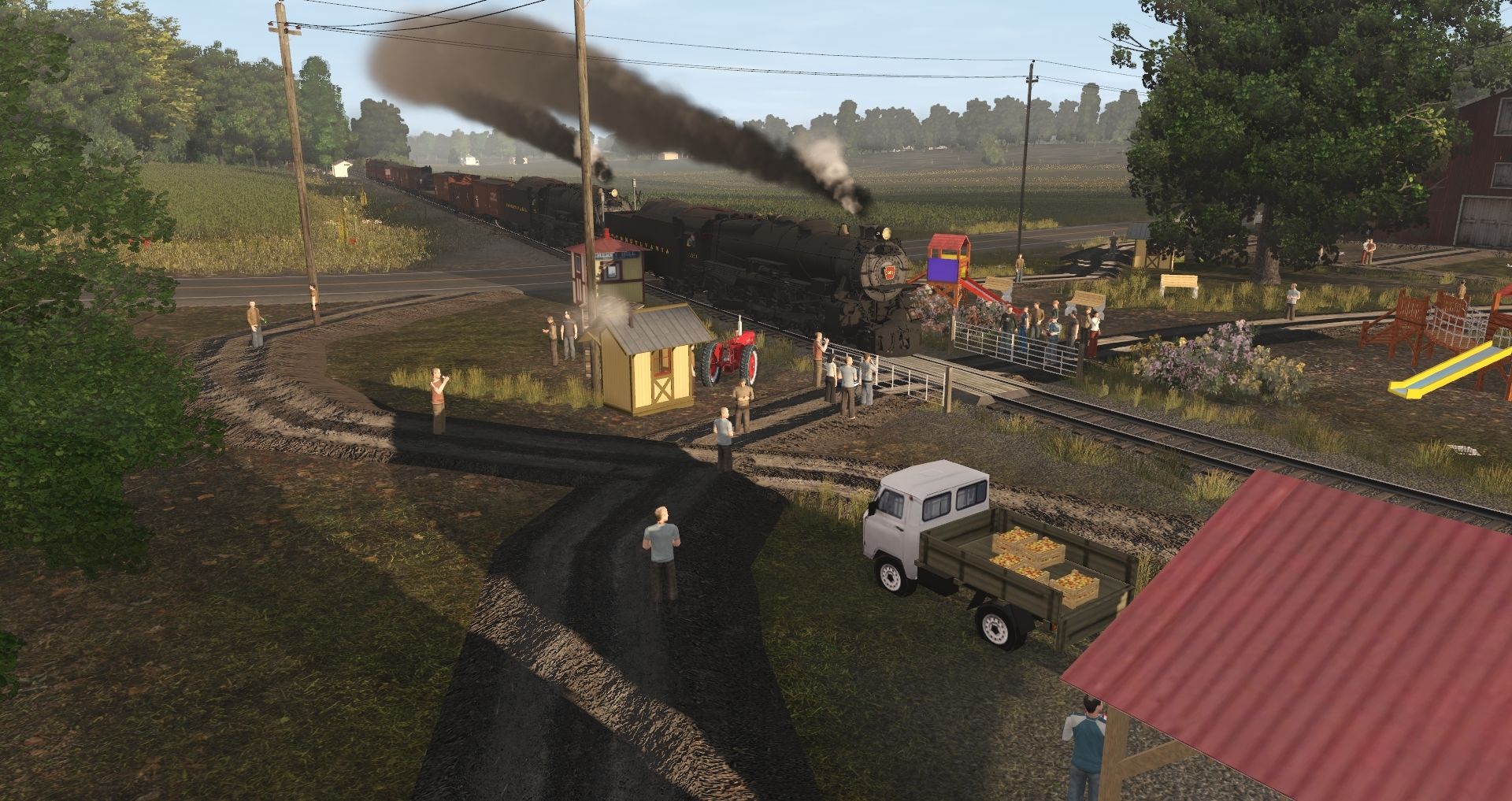 Tags: Trainz Railroad Simulator 2022, Strasburg Rail Road, Default, PRR K4s 1361 Engine, PRR K4s Pacific Engine Postwar, PRR K4s 1361 Tender 130P75, PRR K4s Pacific Tender Postwar 110P75, PRR H21a Hopper, Tidewater Tank Car, M&PA Wood Boxcar, M&PA Flat Car, SRC Coach Cherry Crest, SRC Coach Gobbler's Knob, SRC Caboose 12