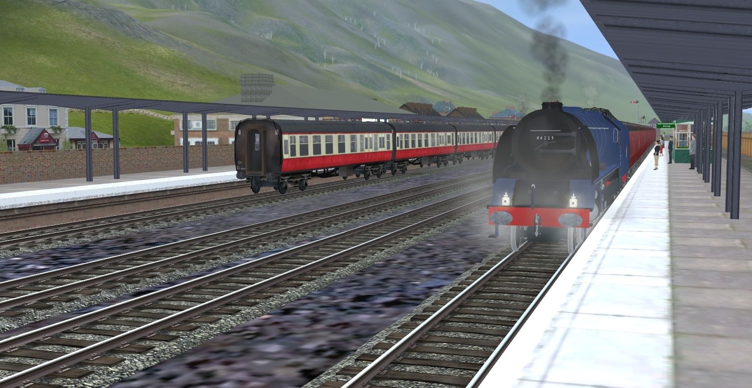 Tags: Trainz: A New Era, Rosworth Vale V3.01, Rosworth Vale V3.01 - Default, 4-6-2 Duchess Class BR Blue, Autocoach - BR Blood n Custard, LNER B1 61010 Wildebeeste, AA BR 57XX 0-6-0PT 9647 BR7A, 4-6-2 Duchess Class Tender BR Blue, BR Mk1 BCK Maroon, BR MK1 BCK, LNER 4200 gallon Tender BR Late Crest