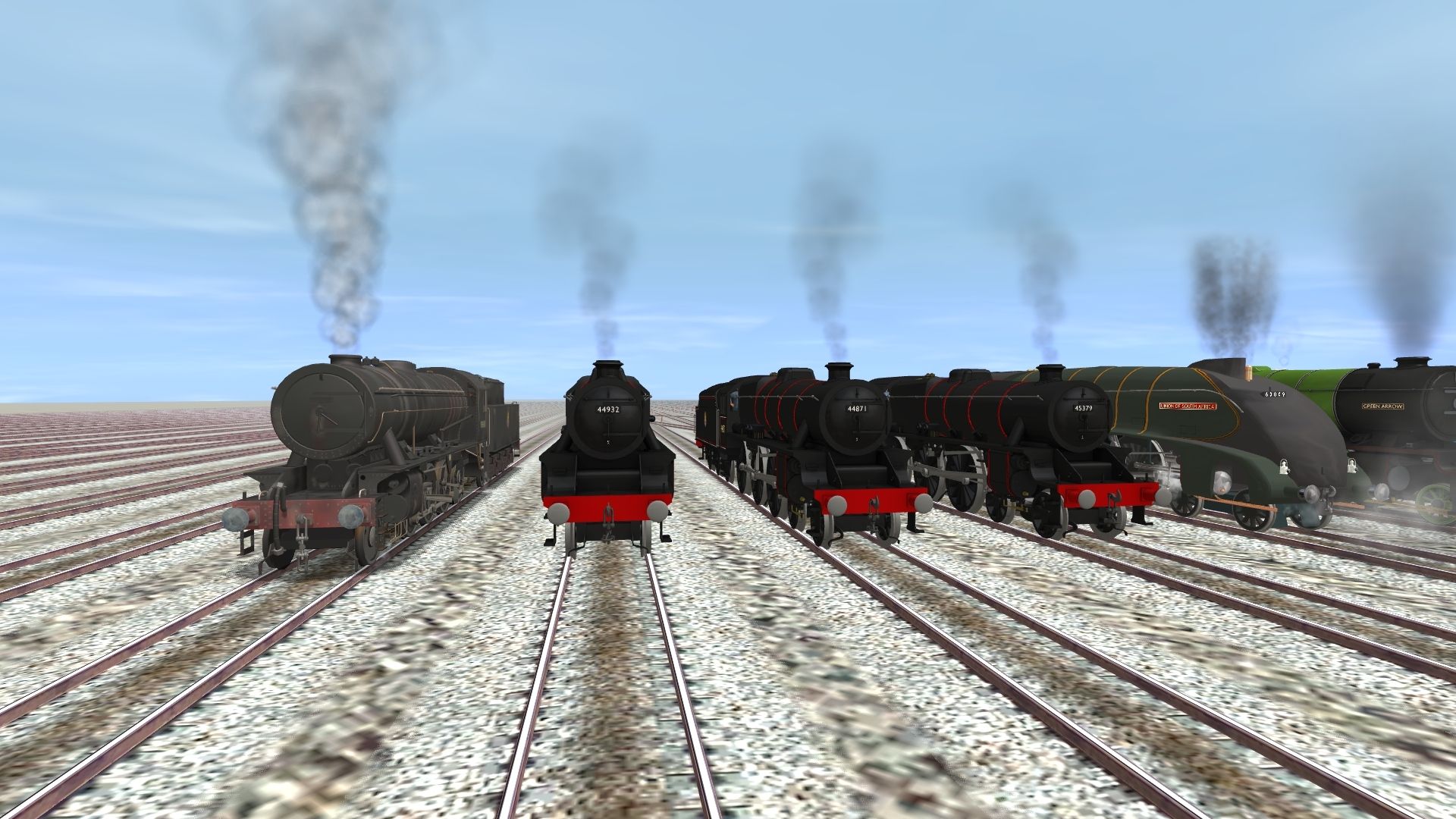 Tags: Trainz: A New Era, 42 Track marshalling yard, Flying Cam, LMS Stanier Black Five (BR Black), WD Austerity 2-8-0, BR A4 Green, LNER Gresley V2 - Prewar High Numbers, LNER A4 Mallard, LNER Gresley A3 Flying Scotsman - 2016 Wartime Black, BR 9f Evening Star, LNER A1 60163 Tornado BR Blue, SR Light Pacific Battle of Britain class loco, 4-6-2 A4 LNER Garter Blue NV