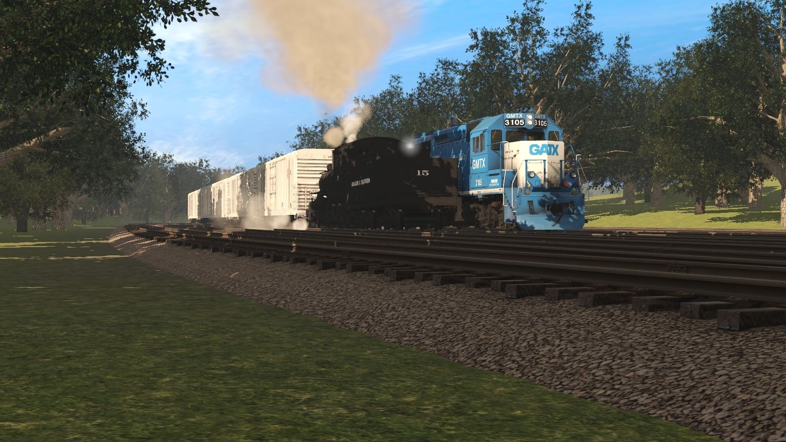 Tags: Trainz Railroad Simulator 2019, Aragon & Southern, GMTX GP40-2, A&S 15 Engine, A&S G16a Engine, A&S Hi-Rail No.1, A&S GP38-2 YN2, A&S RS1, A&S 0-6-0T #47, A&S GP30 #2594, A&S Ex-MILW S-3 Engine, A&S 31 Engine, NKP Mikado Engine V1