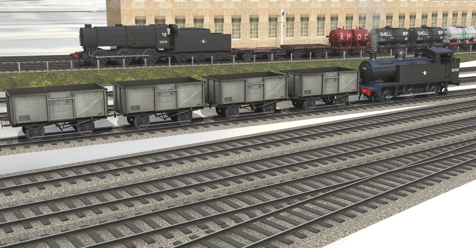 Tags: Trainz Railroad Simulator 2019, South London Test MK 2.09K V5.5, LBSCR E2 BR Late Crest Black Short Tanks, Southern Bulleid Q1 33039, BR 16T Mineral Wagon (diag. 1/108), Southern Bulleid Q1 Tender BR Late Crest, BR 13T Conflat A, BR 13T Lowfit, APOC Twin Tanker, RCH 14T Class B Tanker (Shell-BP), RCH 14T Class A Tanker (Shell-BP), RCH 14T Class A Tanker (Regent), RCH 14T Class A Tanker (National)