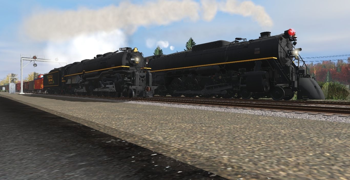 Tags: Trainz Railroad Simulator 2019, New England Coastal Steam Era, Railfanning the M&MRT, Maine & Michigan Racetrack J-1 4-8-4 'Mackinac, Maine & Michigan Racetrack O-1 4-6-6-4 'Challenger' #600, Maine & Michigan Racetrack J-1 4-8-4 'Mackinac' Tender, Maine & Michigan Racetrack O-1 4-6-6-4 'Challenger' #600 Tender, 40ft Maine & Michigan Racetrack AAR boxcar, Maine & Michigan Racetrack Class NE-5 Caboose, 40ft Boxcar USRA CA&L 2, 40ft Boxcar LE&E Mercury Merchandise 1945 Order, 50ft Michigan & Texas Coastlines Automobile boxcar w/end doors, 40ft Maine & Michigan Racetrack X31 Boxcar, 50ft UP Automobile Boxcar #474000