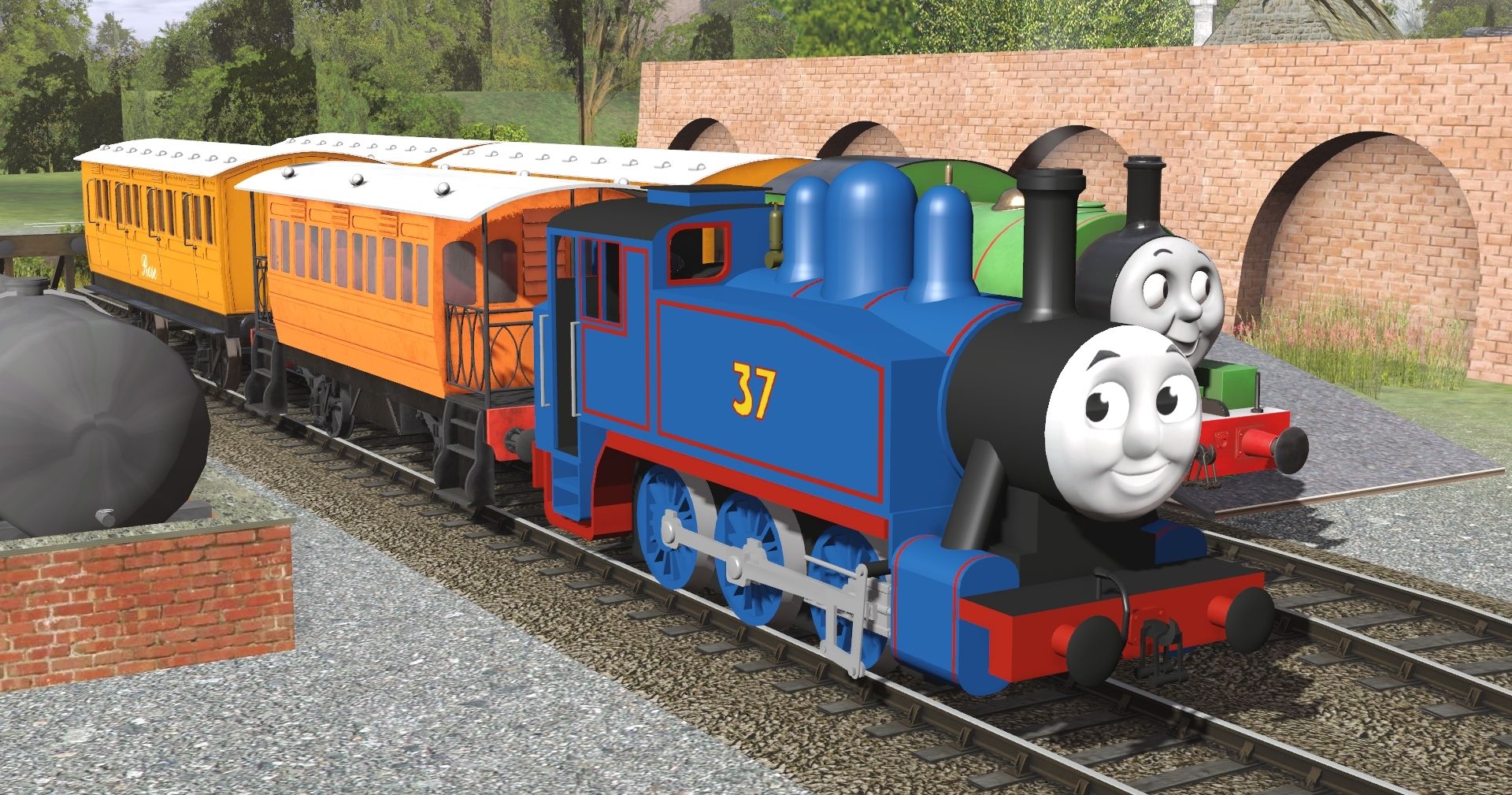 Tags: Trainz Railroad Simulator 2019, ZA - IoSCRV2 - Killiban, Default, TSI - Thomas the Tank Engine (Season 1-2), MR #55 - Monroe the Tank Engine, MR #37 - Renn the Tank Engine, SudrianRails - Percy the Small Engine, Flying Cam PBR, Cheddar - TVS Annie The Coach, Cheddar - TVS 5th Compartment Coach, TTTE - Henrietta, Cheddar - TVS Clarabel The Coach
