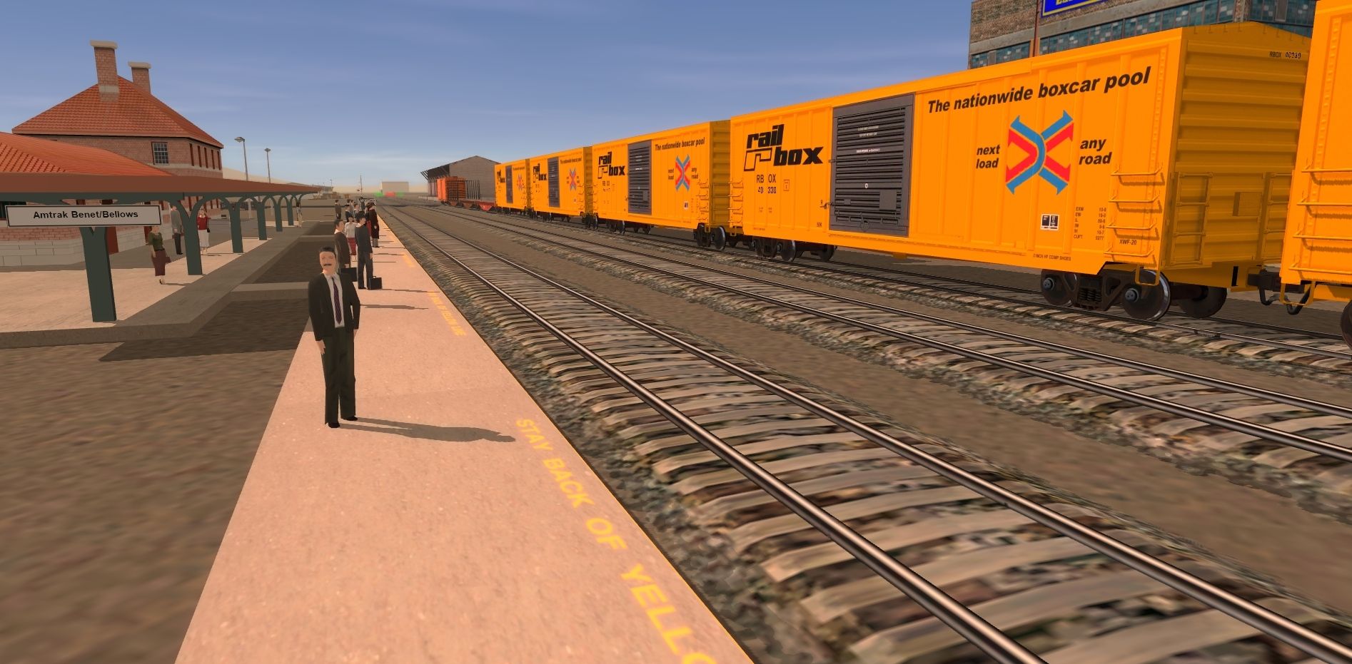 Tags: Trainz: A New Era, Western Way, Default 1.2, CSX GE C40-8W YN3 #7314, Boxcar Berwick 50 ft RailBox DES, Boxcar Evans 53' Double-Plug-Door GTW DES, Boxcar Evans 53' Double-Plug-Door CNW DES, TUME-300592-Flatcar-MILW, TUME-300598-Flatcar-UP, TUME-300599-Logging-Flatcar-UP, 40ft Boxcar CCLE 1#