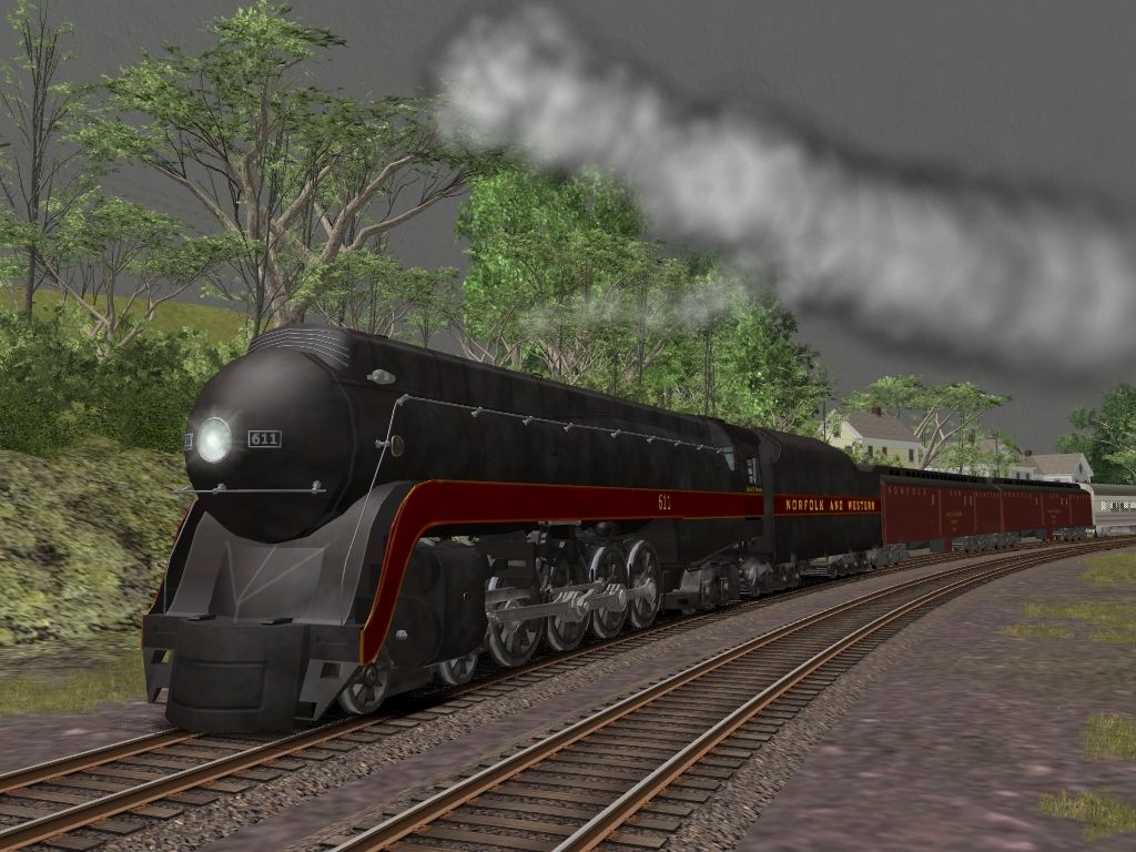 Tags: Trainz: A New Era, Brazemore Yard, N&W Class J 611 (Spirit Of Roanoke), N&W Class J 611 tender, N&W Pullman Baggag car, Southern Budd Coach, Southern Budd Dining Car, PRR FOM POS21A Observation