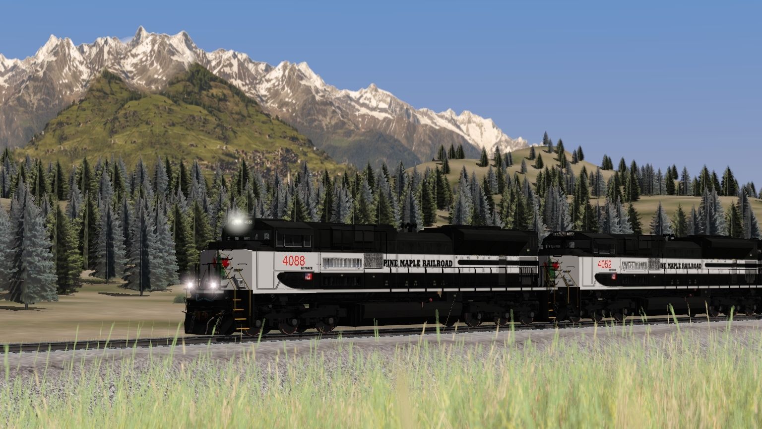 Tags: Trainz Railroad Simulator 2019, BN Oasis V3, Flying Cam PBR, Pine Maple (US Division) SD70ACe, TTX NSC 53 Double stack Well, 40ft Boxcar NP