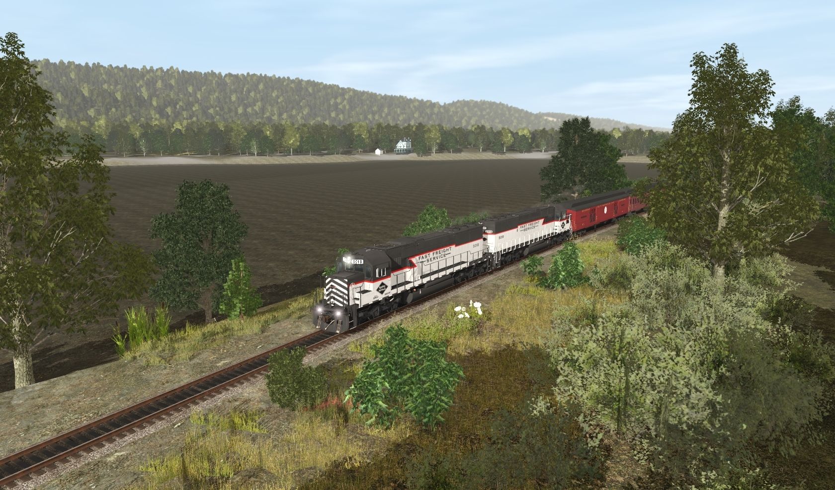 Tags: Trainz Railroad Simulator 2019, READING & NORTHERN TRS19 (post-2020), RBMN SD50-2 #5018, RBMN SD50-2 #5019, R&N Baggage Generator Red, R&N Coach Red Faded, R&N Coach Archroof Red, IC Lightweight Diner Auguste Chouteau, R&N Super Dome Red, SLRG Budd Dome Scenic View, R&N Pullman Sleeper Red, R&N Observation Coach Red, Invisible Train