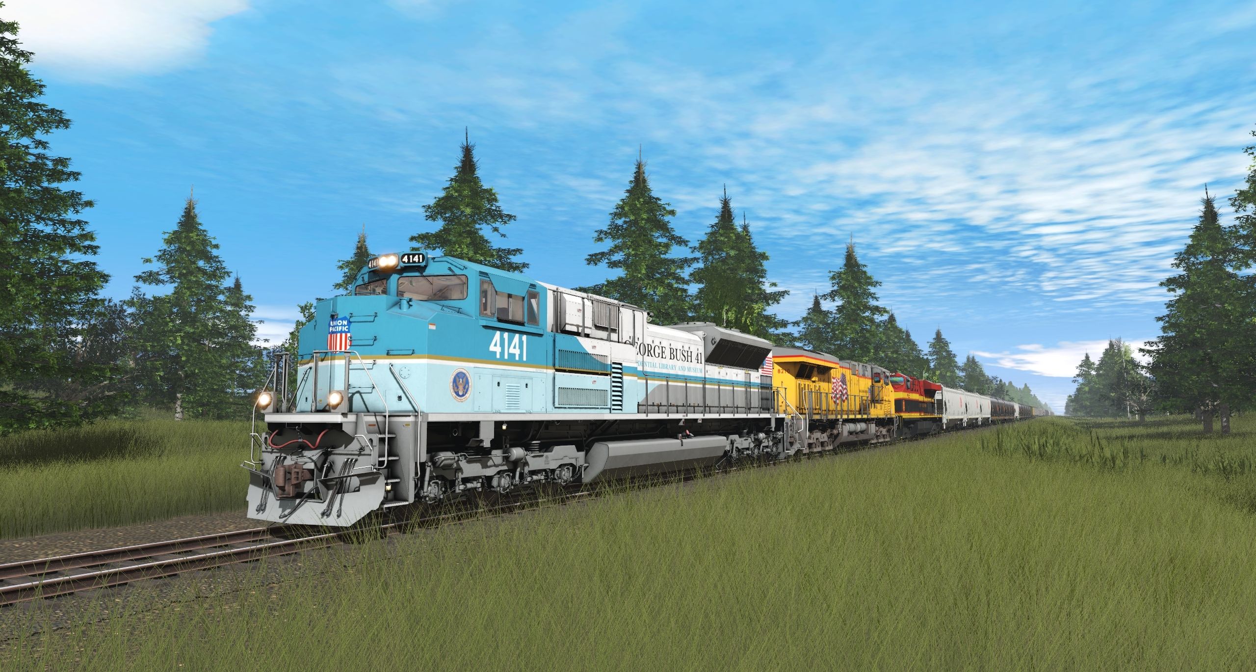 Tags: Trainz Railroad Simulator 2019, UMR2021 MMR UMR REVISITED pERSONAL, UMR Personal, UP SD70ACe George Bush, UP C45AH, KCS ES44AC Belle Scheme, KCS Belle ACF Centerflow 3 Bay long hatch, LGCX Trinity 3 Bay Hopper, MILW Trinity 3 Bay Hopper, MOCX Trinity 3 Bay Hopper 2, MWGX (dirty) Cylindrical Hopper, MWGX ACF Centerflow 4 Bay Dirty, KCS 5188 3 bay, KCS 'Belle' ACF Covered Hopper