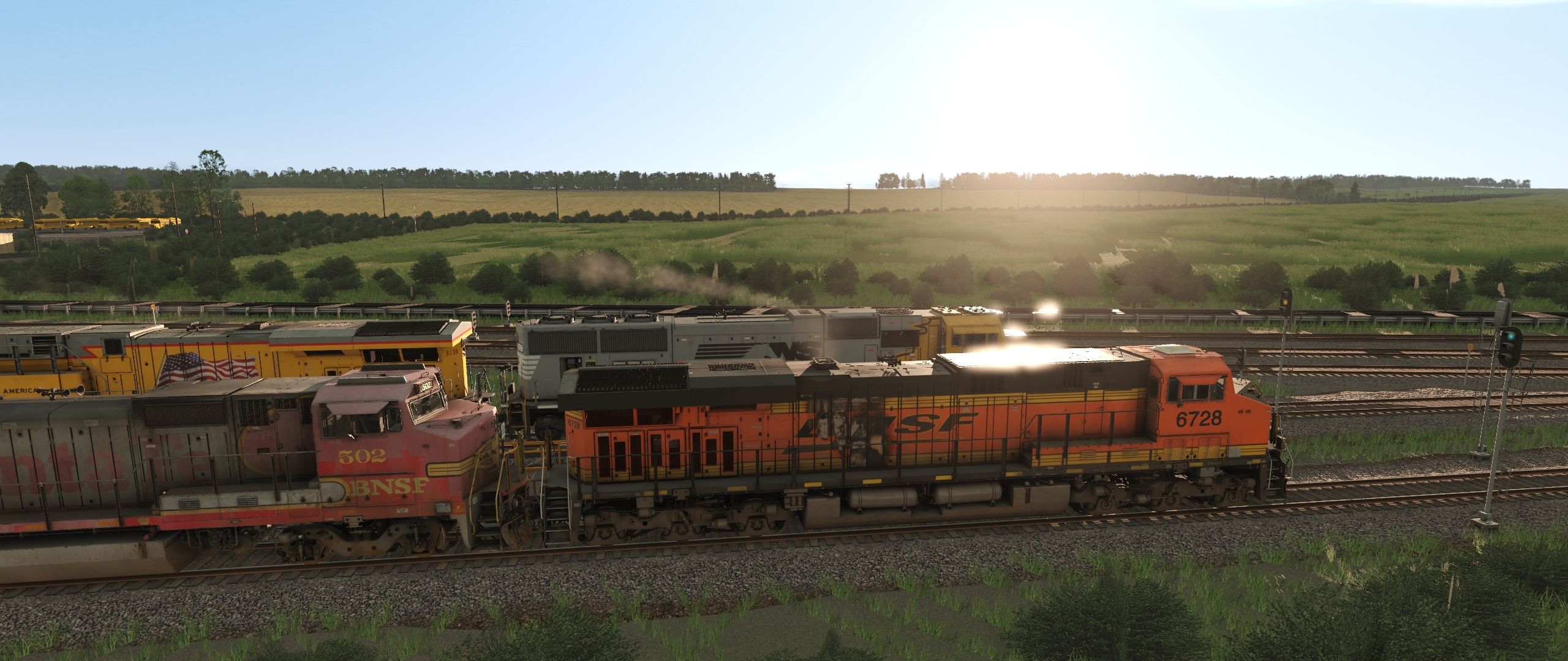 Tags: Trainz Railroad Simulator 2022, BNSF Lincolnshire Sub, Default, BNSF ES44C4, BNSF B40-8W (EX-ATSF) 500-559 3, NS SD70ACC #1800, UP C45AH, CAGX Trinity 3 Bay Hopper, CGOX 5188 3 bay, CMO (UP) 5188 3 bay, CNIS 376019 Cylindrical Hopper, CNWX Cylindrical Hopper, CNW 174788 Trinity 3 Bay Hopper, CRGX Cylindrical Hopper