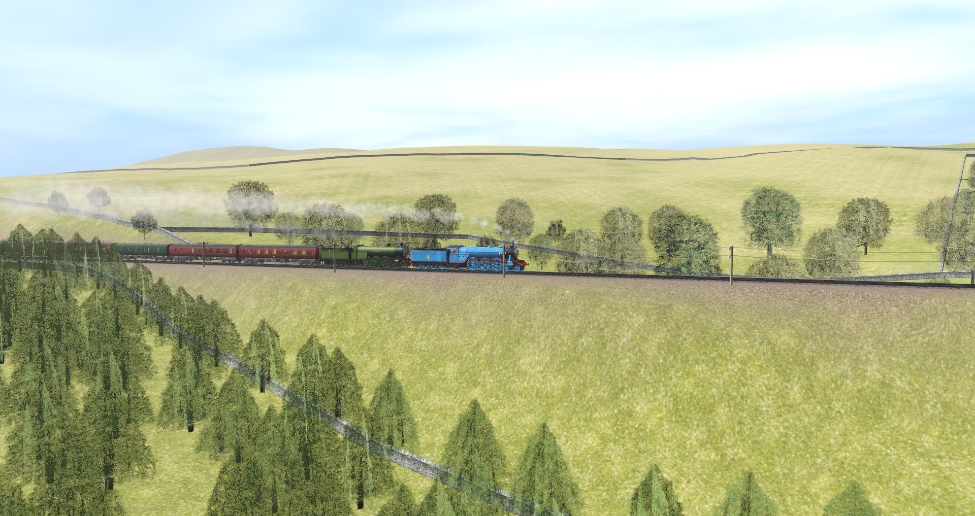 Tags: Trainz Railroad Simulator 2019, Hawes Junction TRS19, Engie's + RT - NWR #4 Lined Frames (TS19), RWS Henry (Original Shape - NWR Green Pacific Wheels), Engie's + RT - NWR #4's Lined Frames Tender (TS19), RWS Henry (Original Shape Tender - NWR Green), BR Mk1 FO Maroon, BR Mk1 BSK Maroon, BR Mk1 BG Green, BR Mk1 TSO Maroon, BR Mk1 BSO Maroon