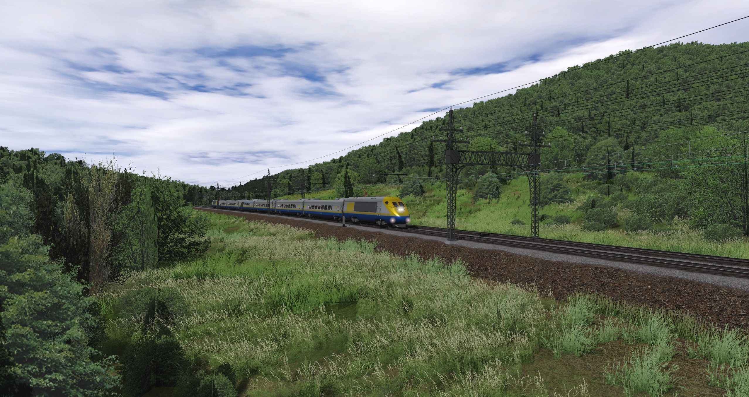 Tags: Trainz Railroad Simulator 2022, Appalachian RoW Electric, Default, VIA Acela Power Car (rear), VIA Acela Power Car (front), VIA Acela First, VIA Acela Business, VIA Acela Bistro, VIA Acela Business (End)