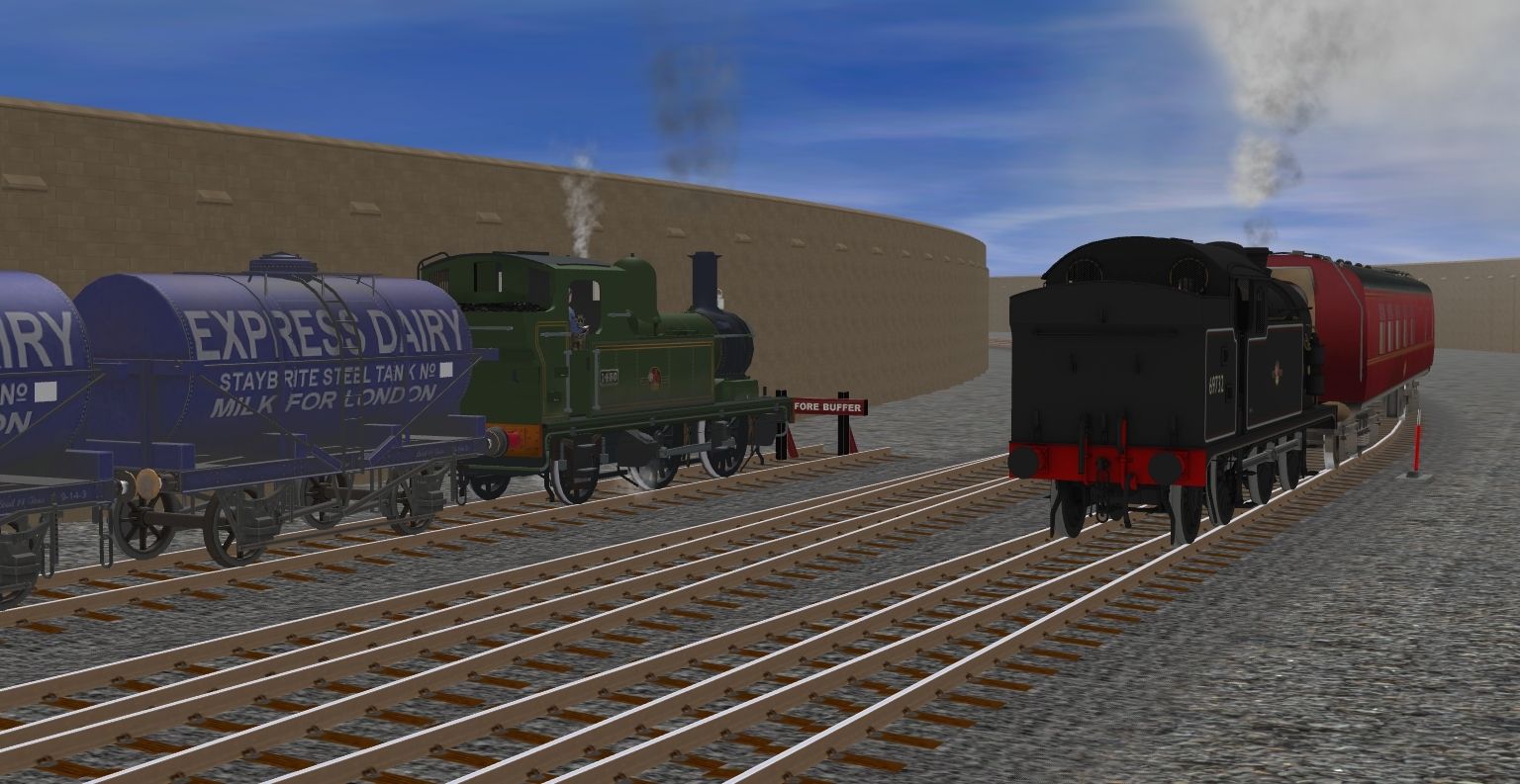 Tags: Trainz: A New Era, Eastnox & Westford Railway V2 WIP, Test Run with New Bolston, LNER N7 69732 Late Crest, 14xx BR green, RCH 1923 7 Plank J Brennan, RCH 14t Milk Tanker Express Dairys, BR Conflat A Diag 1/061, BR Covered Bogey Wagon Dirty, BR(W) 20T Toad Brake Van Weathered Unfitted, BR Mk1 BCK Maroon