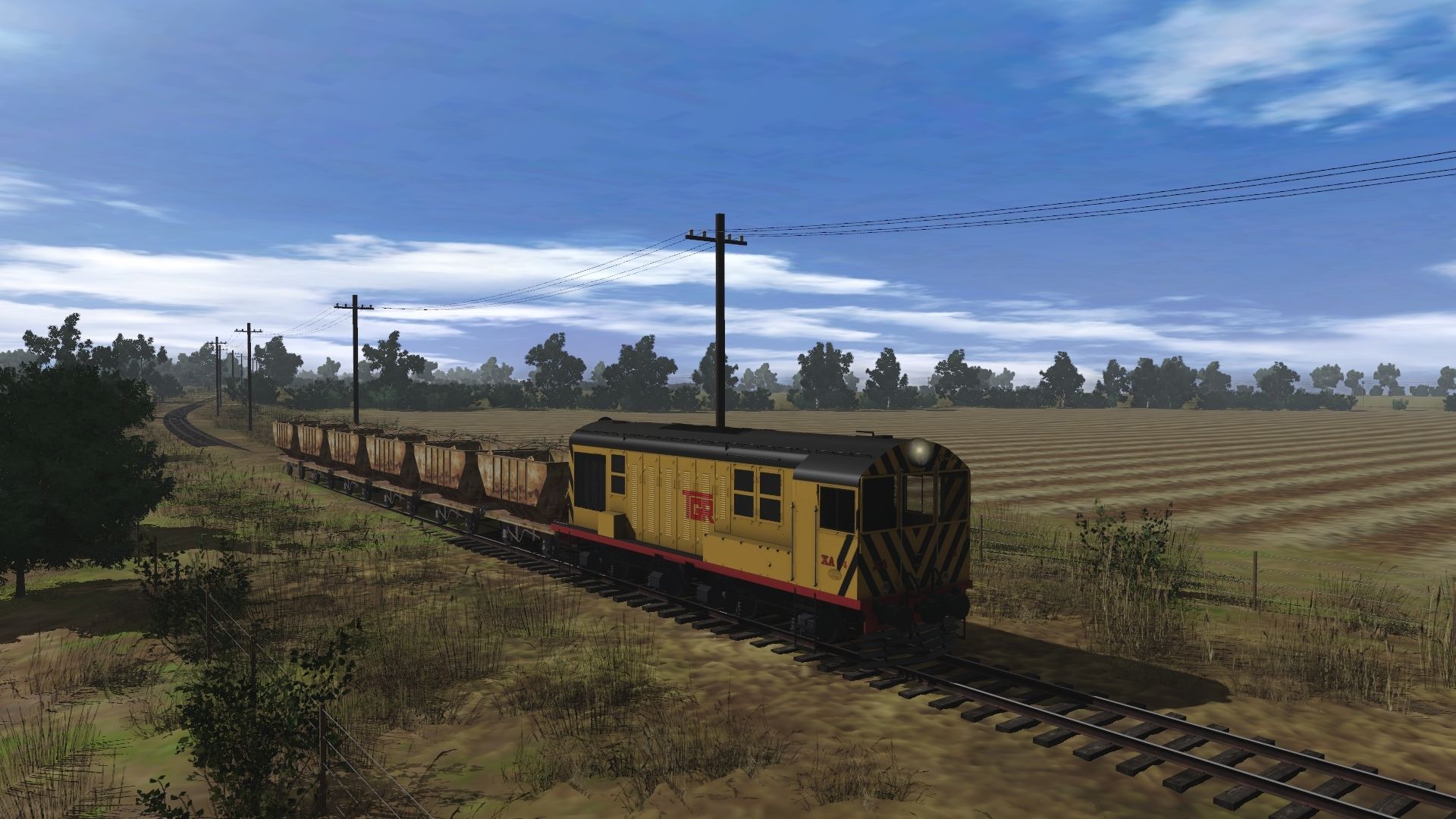Tags: Trainz Railroad Simulator 2022, TGR Fingal Line 1955 Narrow Gauge (3ft 6in - 1067mm) (TANE SP2), TGR, TGR XA Class - Tiger Stripes, QR NG GVJD Hopper Empty