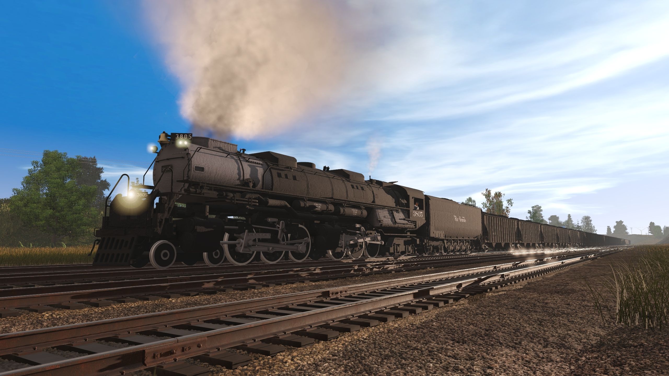 Tags: Trainz Railroad Simulator 2019, Leadville Sub Division - TRS19, Default, D&RGW L-97 Challenger, D&RGW Centipede Tender, GPLX ex-BN 100 Ton Hopper, PPLX 100 Ton Hopper