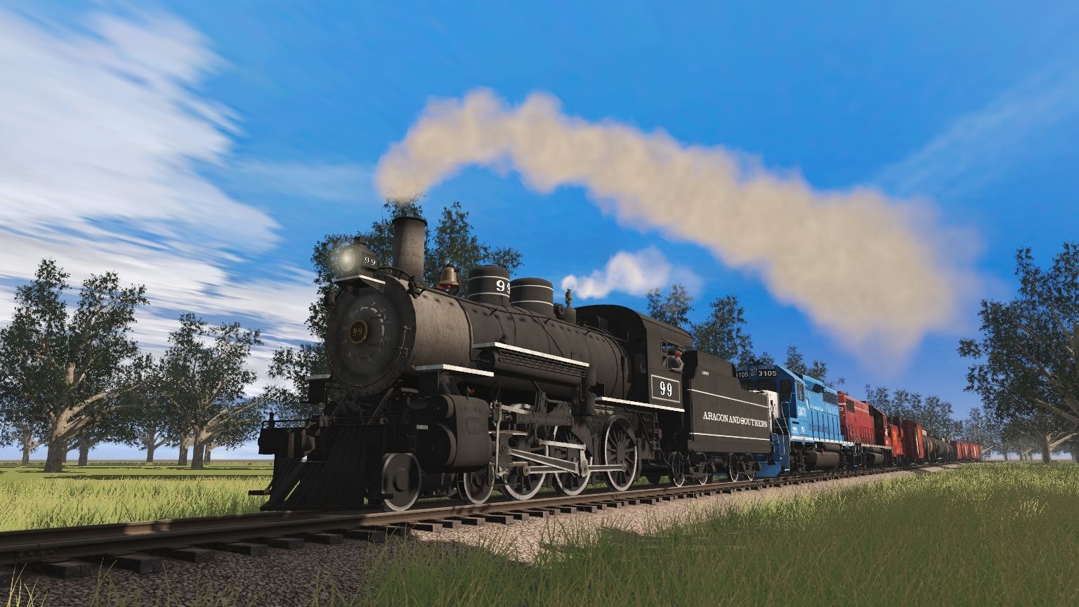 Tags: Trainz Railroad Simulator 2019, Aragon & Southern, A&S 4-6-0 Engine, GMTX GP40-2, SPRX GP38-2, A&S 4-6-0 Tender, SPRX Safety Caboose, SPRX Spill Training Car Tank, SPRX Simulation Car Tank, SPRX Hazmat Training Car Tank, SPRX Fire Training Car Tank, SPRX Classroom Boxcar