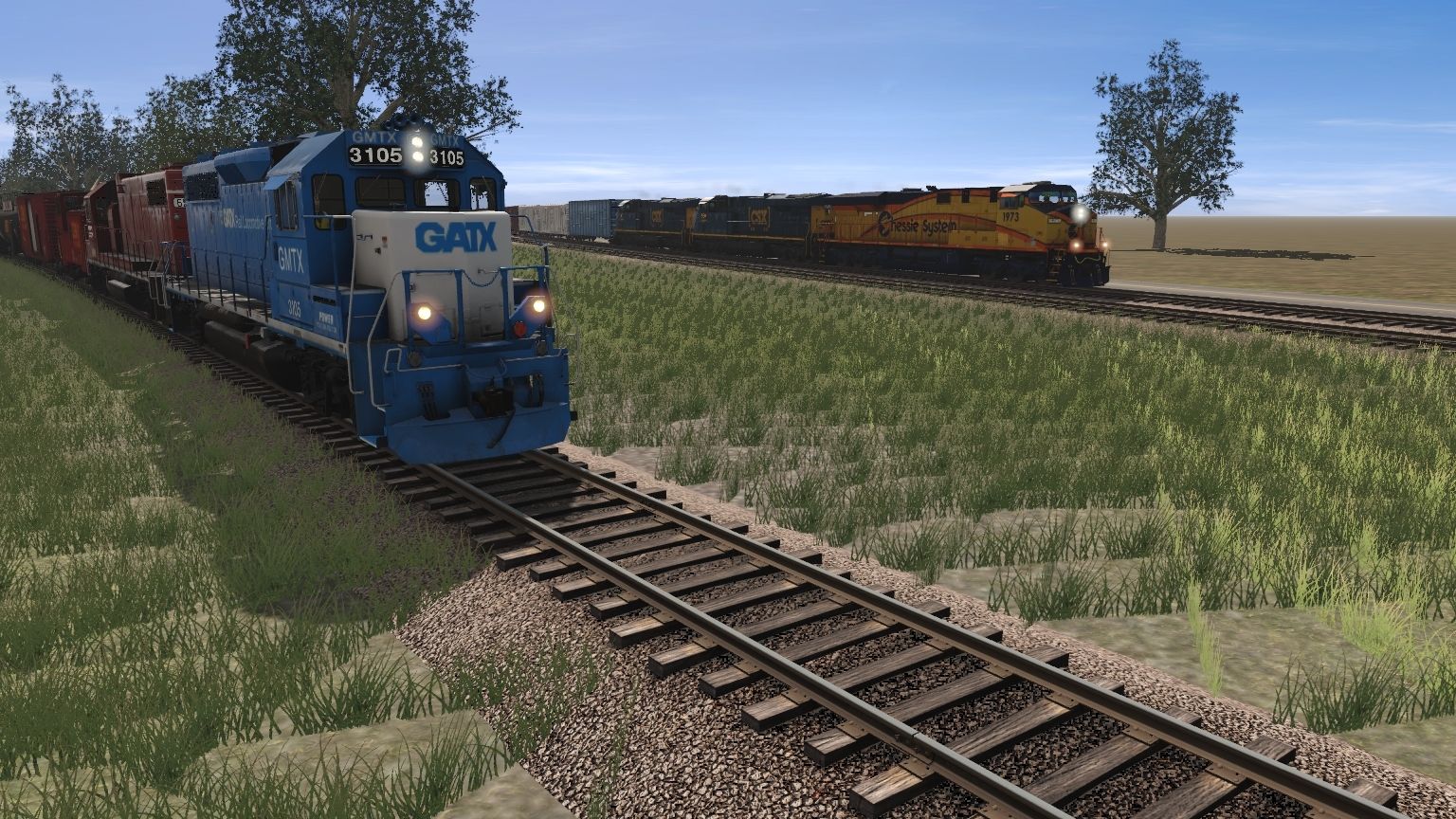Tags: Trainz Railroad Simulator 2019, Aragon & Southern, GMTX GP40-2, SPRX GP38-2, CSX Chessie Heritage ES44DC, CSX ES44AH YN3TL, A&S 4-6-0 Engine, CSX SD70MAC YN3b FR, KCS SD70ACe NON-ISO 2a Grey Ghost, SPRX Safety Caboose, SPRX Spill Training Car Tank, SPRX Simulation Car Tank, APA 60Ft.9In. woodchip gondola