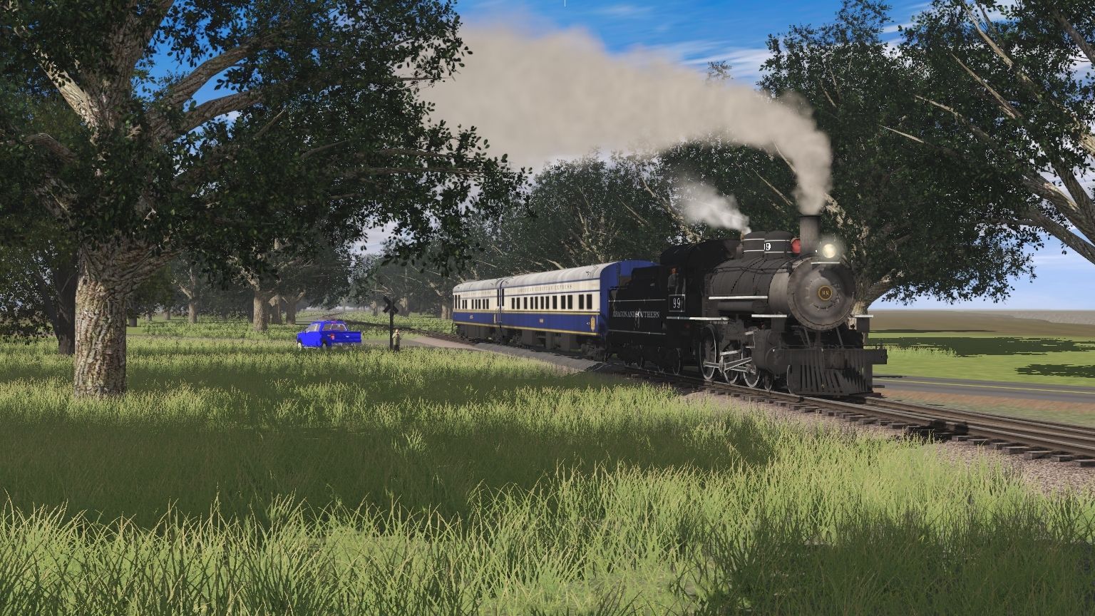 Tags: Trainz Railroad Simulator 2019, Aragon & Southern, A&S 4-6-0 Engine, A&S 4-6-0 Tender, AEE Sleeper Paris, AEE Parlor New York, 73ft Centerbeam GTW 3, 73ft Centerbeam NOKL, 73ft Centerbeam TTX 2, 73ft Centerbeam STRX, BNSF 73ft Centerbeam (safety stripes) v2, ARMN PCF 57' Reefer, TPIX Mechanical Refrigerator Boxcar Weathered 1