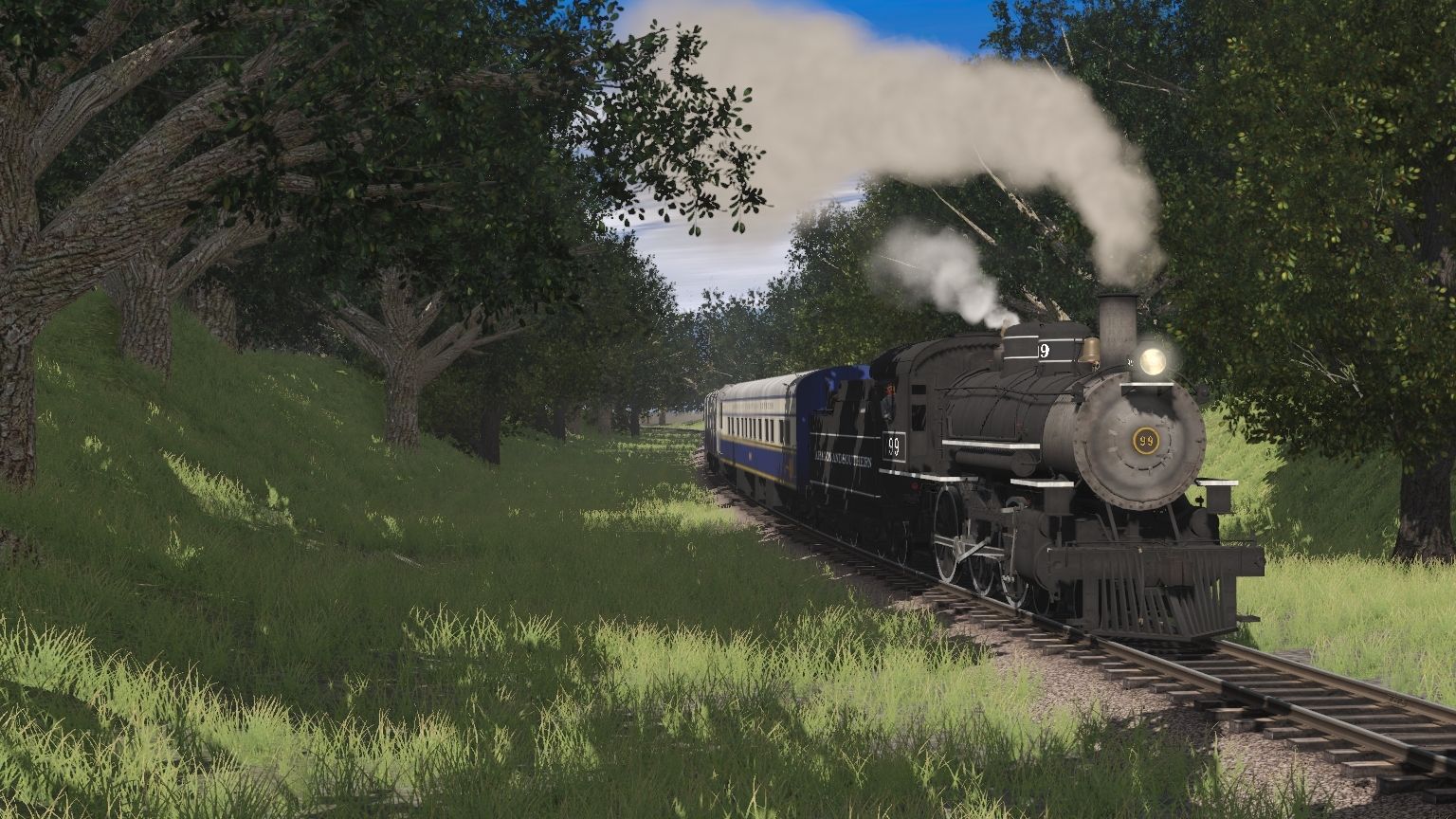 Tags: Trainz Railroad Simulator 2019, Aragon & Southern, A&S 4-6-0 Engine, A&S 4-6-0 Tender, AEE Sleeper Paris, AEE Parlor New York, 73ft Centerbeam GTW 3, 73ft Centerbeam NOKL, 73ft Centerbeam TTX 2, ARMN PCF 57' Reefer, 73ft Centerbeam STRX, BNSF 73ft Centerbeam (safety stripes) v2, TPIX Mechanical Refrigerator Boxcar Weathered 1
