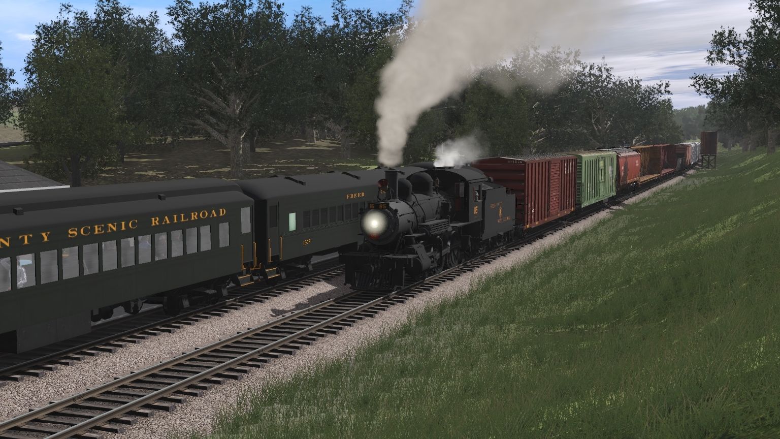 Tags: Trainz Railroad Simulator 2019, Aragon & Southern, FCSR 85 Engine, A&S Excursion Generator, FCSR Coach V2, A&S Excursion Tool Car, FCSR Coach V1, FCSR 85 Tender, BKTY (GATX) 50ft Boxcar FMC, FCSR Coach V3, BNFE Green PCF 57' Reefer, FCSR Coach V4, A&S 5188 3 bay