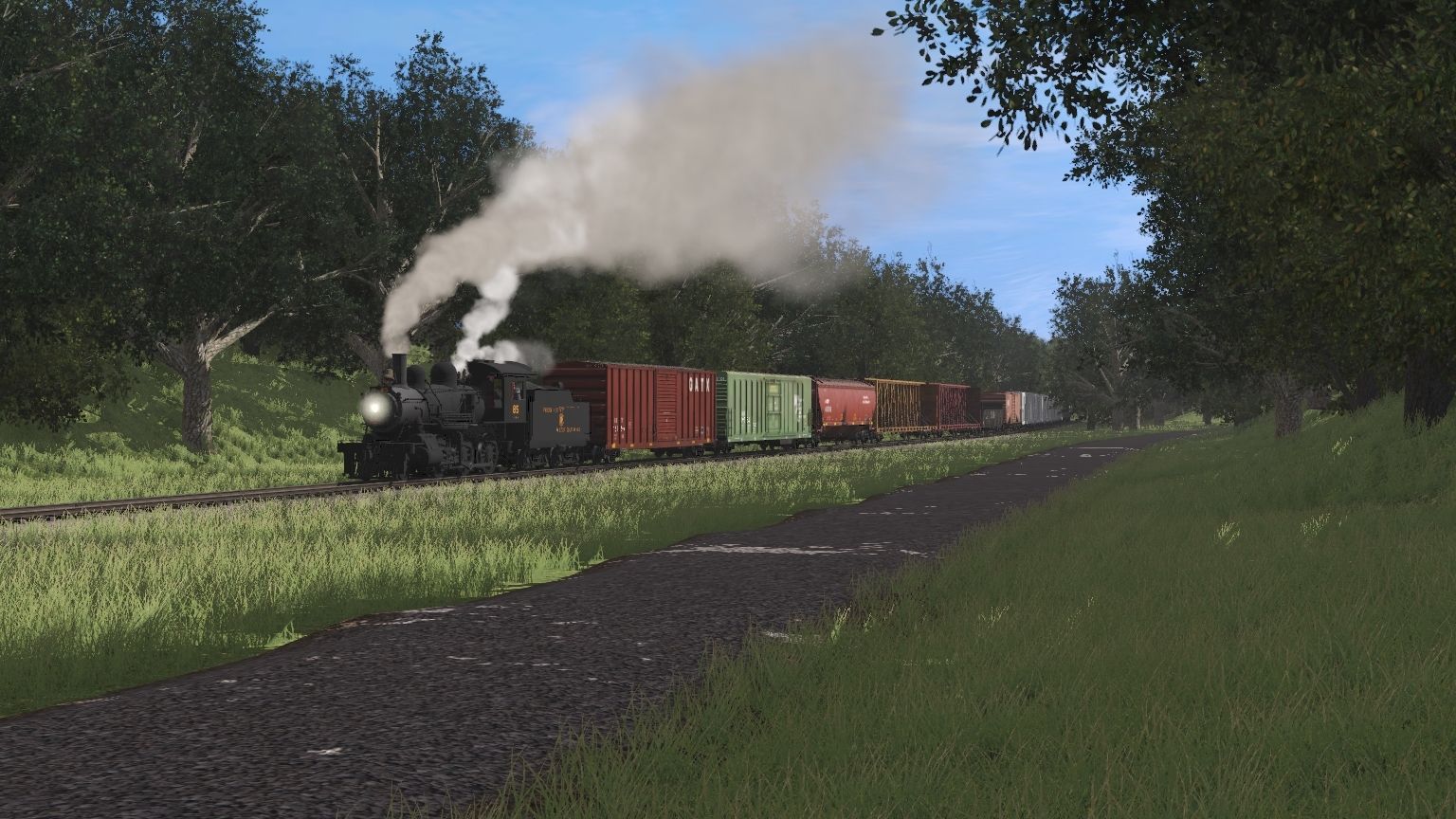 Tags: Trainz Railroad Simulator 2019, Aragon & Southern, FCSR 85 Engine, FCSR 85 Tender, BKTY (GATX) 50ft Boxcar FMC, BNFE Green PCF 57' Reefer, A&S 5188 3 bay, 73ft Centerbeam TTX 3, 73ft Centerbeam GTW 3, NS G72 Gondola, NS 50' ACF Boxcar 1, ARMN PCF 57' Reefer, AEE Parlor New York