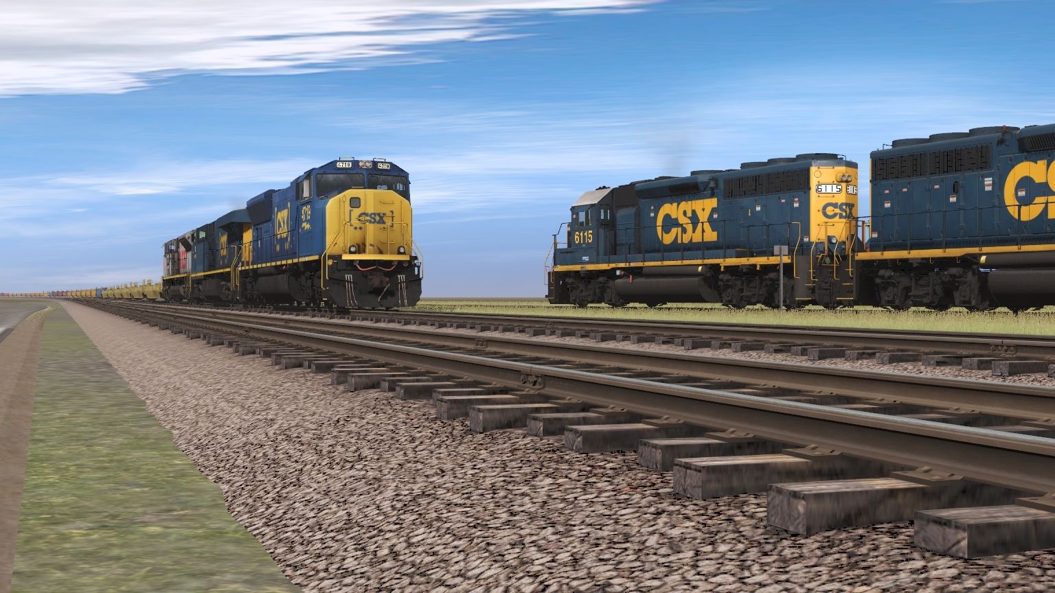 Tags: Trainz Railroad Simulator 2019, Aragon & Southern, CSX GP40-2 YN3, CSX SD70MAC YN3b FR, CSX ES44AH YN3TL, KCS SD70ACe NON-ISO 2a Grey Ghost, FCSR 85 Engine, BKTY (GATX) 50ft Boxcar FMC, BNFE Green PCF 57' Reefer, A&S 5188 3 bay, 73ft Centerbeam TTX 3, 73ft Centerbeam GTW 3, NS G72 Gondola