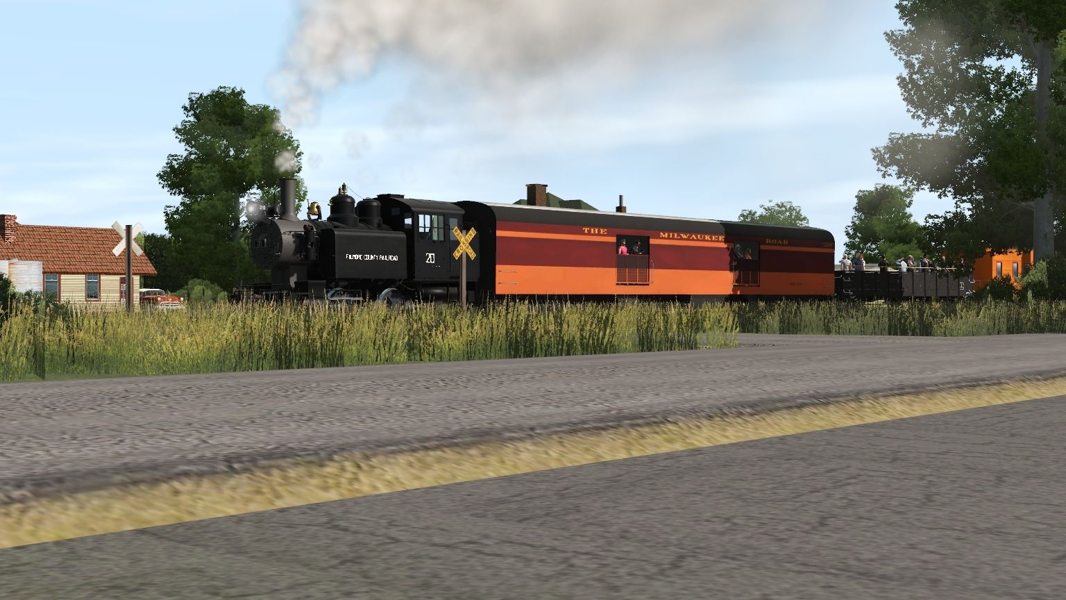 Tags: Trainz Railroad Simulator 2019, Fillmore County MN, FCRR 20 Engine, MILW 02 Baggage 2450, A&A Open Air Gondola V1, TUME-300529-Caboose-MILW