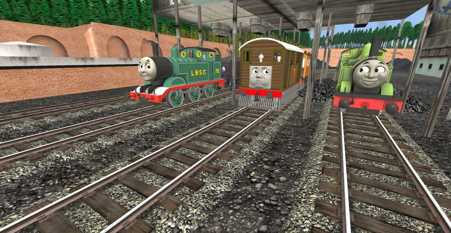 Tags: Trainz: A New Era, Coal Yard (My Version), CGI No.70 - Thomas the Tank Engine, CGI No.7 - Toby the Tram Engine, CGI No.11 - Oliver the Western Engine (5.1), CGI - Henrietta the Old Coach, Troublesome Truck - Grey (Coal), CGI - Toad the GWR Brakevan, Bear the Hymek (BR Green), J94 class NCB, TTTE - Percy the Small Engine, GWR 51xx large Prairie, TTTE - Bachmann Jr E2 - 2005 w/faces