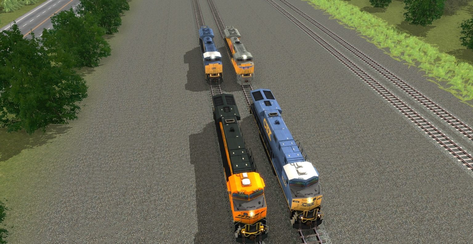 Posted by: gramma | Posted:2023-08-20 02:36:31 Caption: Tags: Trainz: A New Era, Trainz Reskin Comparison (TANE), BNSF ES44DC (TS12), CSX ES44DC (TS12), UP SD70ACe (TS12), CSX SD70ACe (TS12)