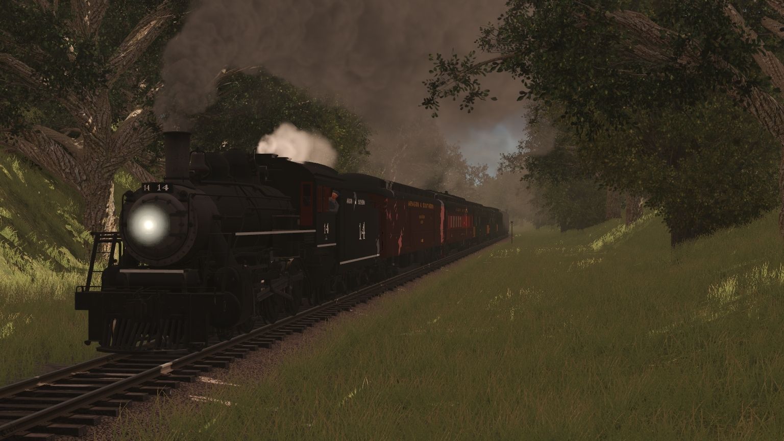 Tags: Trainz Railroad Simulator 2019, Aragon & Southern, A&S G16a Engine, A&S G16a Tender, A&S Excursion Tool Car, A&S Excursion Generator, FCSR Coach V2, FCSR Coach V1, FCSR Coach V3, FCSR Coach V4, FCSR Combine, A&S Sophie Diner, ARMN PCF 57' Reefer