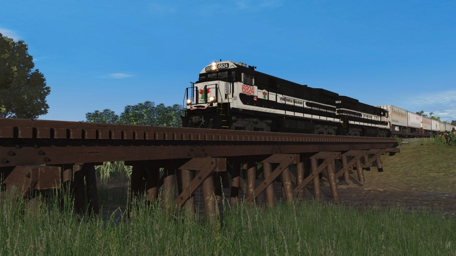 Tags: Trainz Railroad Simulator 2019, Indiana Western 1970s TS19 1.0, Flying Cam PBR, Pine Maple (US Division) C30-7, TTX F89F Flat 89 TOFC Trailer Train Oxide Red