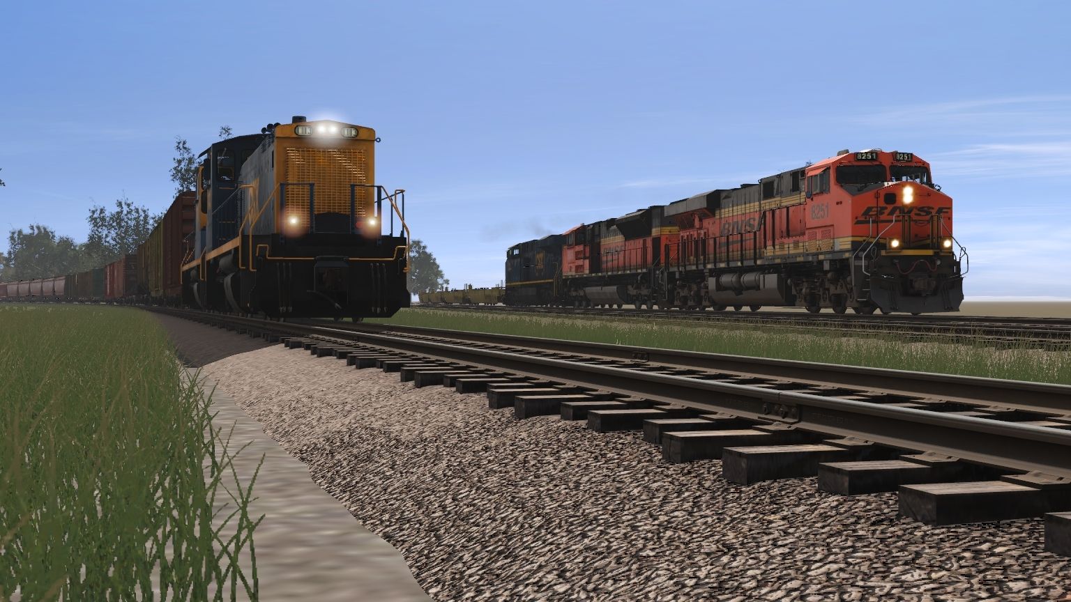 Tags: Trainz Railroad Simulator 2019, Aragon & Southern, CSX YN3 SW1500 v2, CSX YN3B SW1500 v2, BNSF ES44C4, BNSF SD70ACe 2f early, CSX ES44AH YN3TL, NKP Mikado Engine V1, GMRC 50ft Boxcar FMC, HS 50ft Boxcar FMC #72365, MILW LO 4750 3 bay, NOKL 73ft Centerbeam (safety stripes), NS 50' ACF Boxcar 1