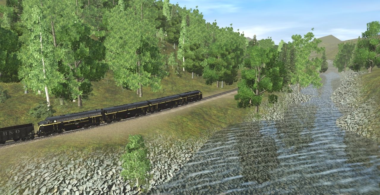 Posted by: Wm734 | Posted:2023-08-24 19:37:56 Caption: Tags: Trainz Railroad Simulator 2019, CK&W Spruce Mountain branch, CK&W F7A Ph 1c, CK&W F7B Ph 1a, CK&W F3A Ph 2a, USRA 55T H B&O Late