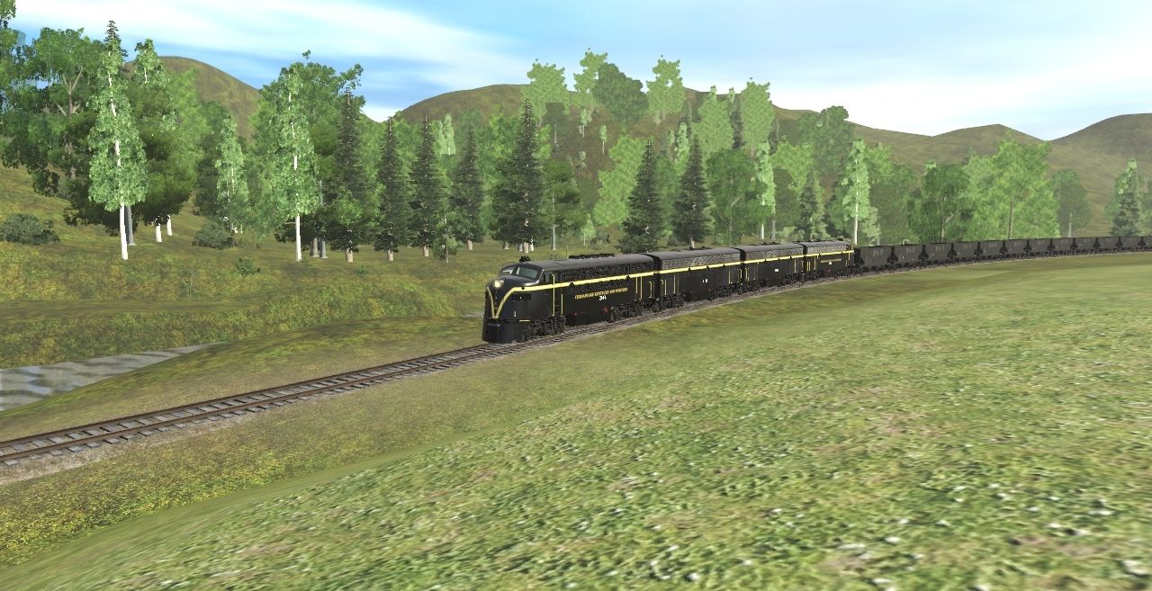 Posted by: Wm734 | Posted:2023-08-24 19:38:11 Caption: Tags: Trainz Railroad Simulator 2019, CK&W Spruce Mountain branch, CK&W F3A Ph 2a, CK&W F7B Ph 1a, CK&W F7A Ph 1c, USRA 55T H B&O Late