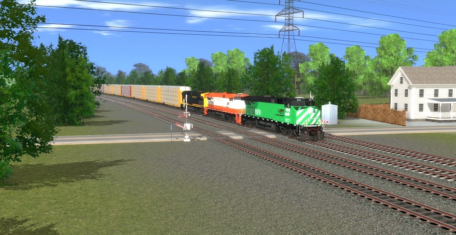 Tags: Trainz: A New Era, Trainz Reskin Comparison (TANE), BNSF ES44C4 #1970 BN Fictional HU (TS12), BNSF ES44C4 #1916 SLSF Fictional HU (TS12), BNSF ES44C4 #1864 NP Fictional HU (TS12), Invisible Train, Tri-level ETTX Autorack BNSF, Tri-level ETTX Autorack TTX, Tri-level ETTX Autorack ATSF, Tri-level ETTX Autorack UP, Tri-level ETTX Autorack NS, Tri-level ETTX Autorack CSX, Tri-level ETTX Autorack CONRAIL