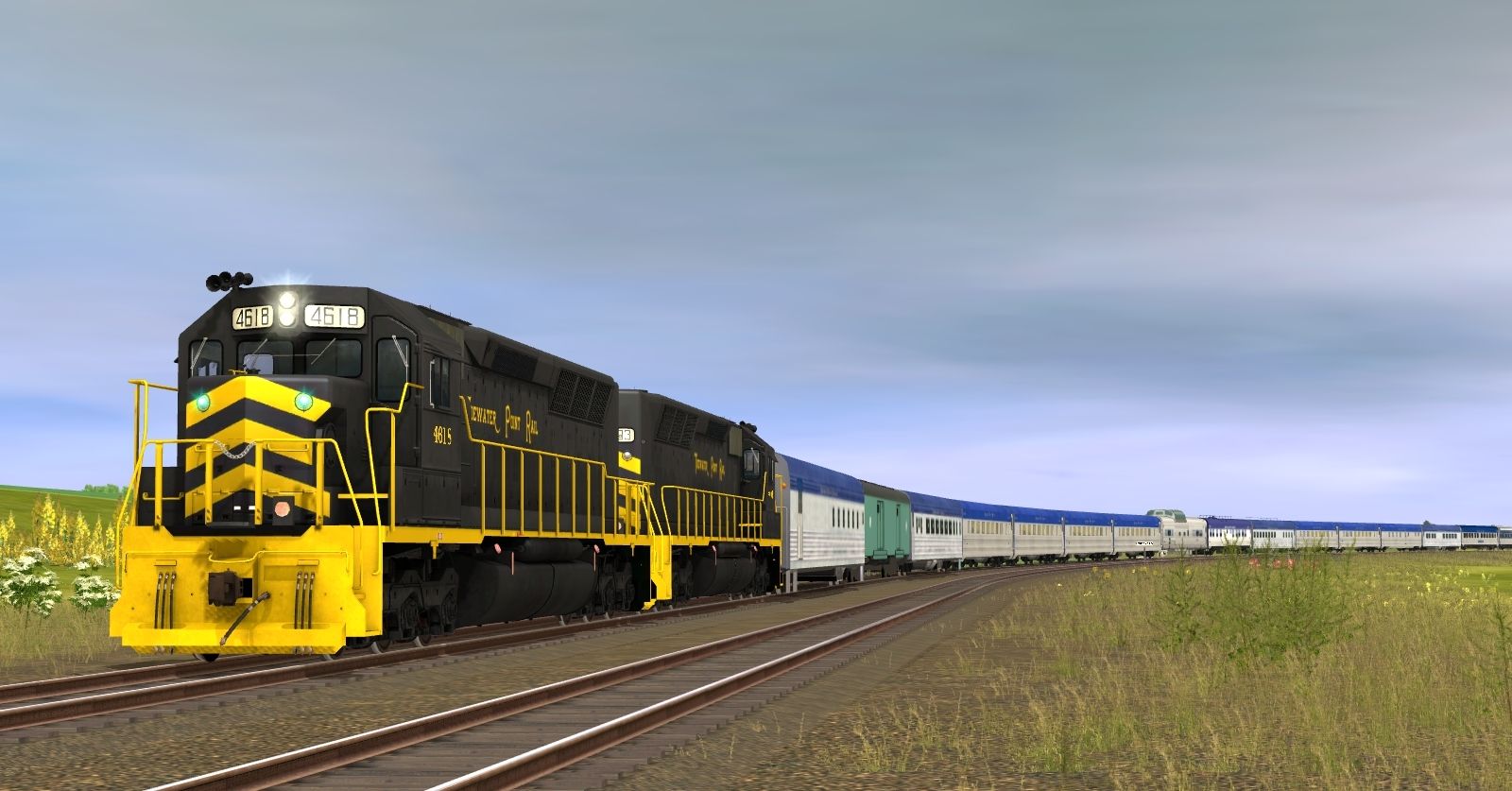 Tags: Trainz: A New Era, UMR 2016 - TANE, Stearman M4 Startup, TPR EMD SD45M, NKP Lightweight Baggage Dorm, PC ACF Baggage Car, NKP Lightweight Coach V2, NKP Lightweight Pullman Coach, BN Dome-Coach 4735 'Silver Buckle, NKP 5 DB-Cafe-Lounge 151 'City of Chicago, NKP Lightweight Lounge, NKP Lightweight Pullman 5DBR Dorm Lounge, NKP Lightweight Diner