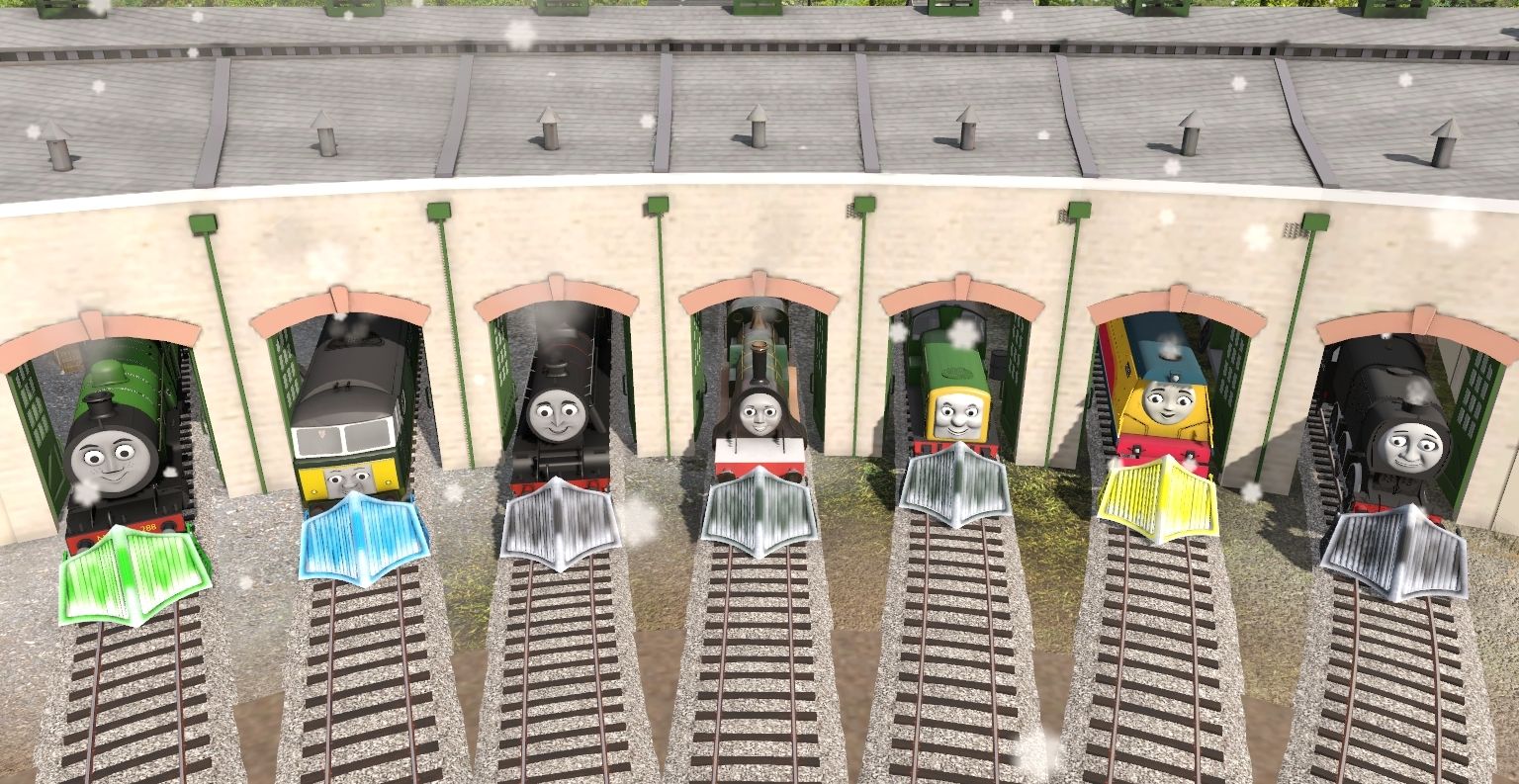 Tags: Trainz Railroad Simulator 2019, LegoTheMano - Tidmouth Sheds (CAE+ TANE), TSI - Emily The Emerald Engine, Peter the Heavy Goods Engine (NWR Black), Alice the Atlantic Engine, CR3D - Neville The Q1, Bear the Hymek (NWR Green), Engie's - Derek The 'Paxman' Diesel (TS19), CR3D - Rebecca, TSI - Emily's Tender, Sodor Snowplough Dark Green (ver.1) (Snow on), Sodor Snowplough Light Blue (ver.1) (Snow off), Sodor Snowplough Green (ver.1) (Snow on)