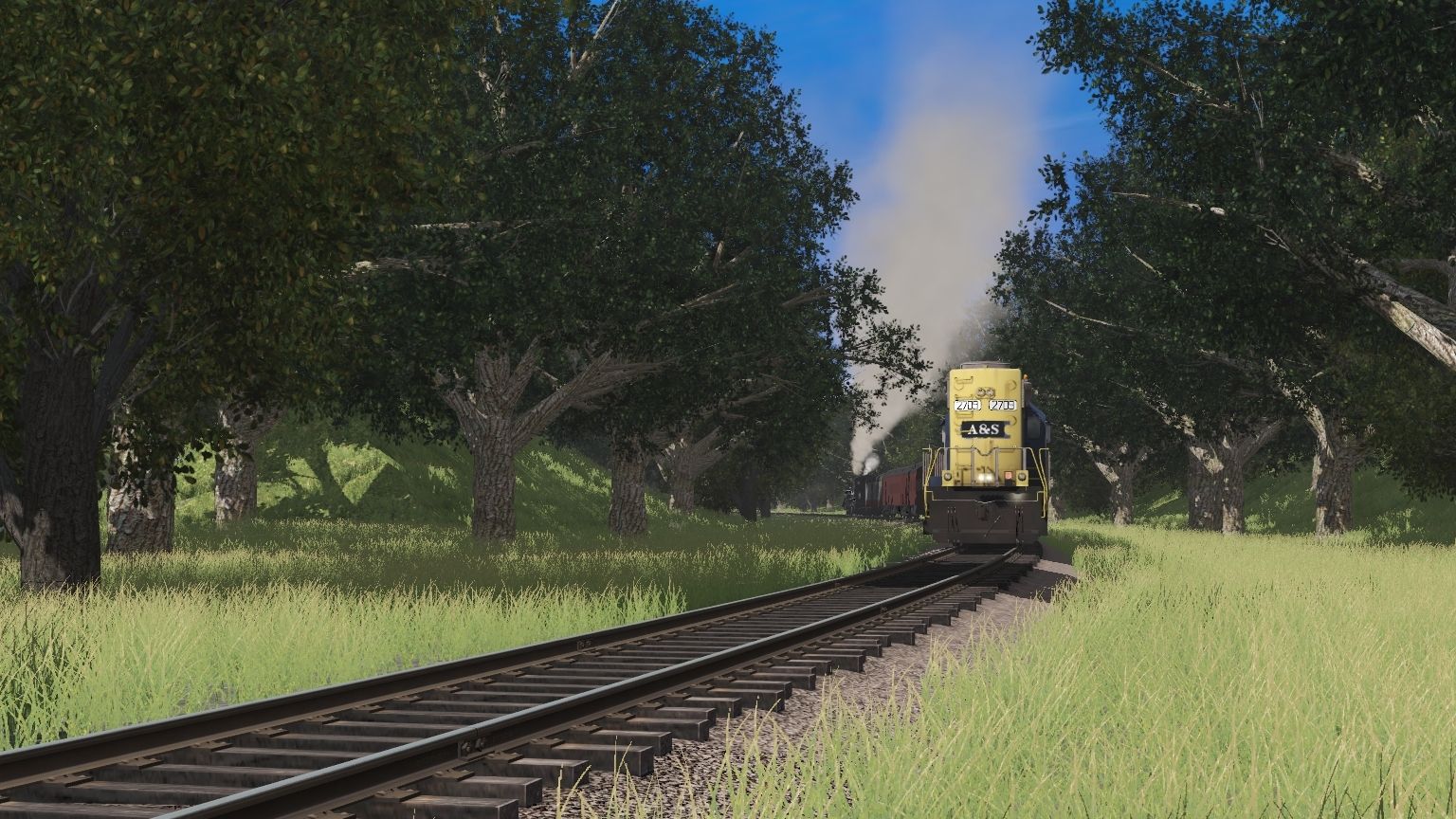 Tags: Trainz Railroad Simulator 2019, Aragon & Southern, Main Session, A&S GP38-2 YN2, A&S 209 Engine, FCSR Observation Summit View, FCSR Open Air Gondola, A&S Ex-ACE 3000 Coach, A&S Ex-N&W Coach, A&S Ex-N&W Combine, A&S ADA 1365, A&S 209 Tender