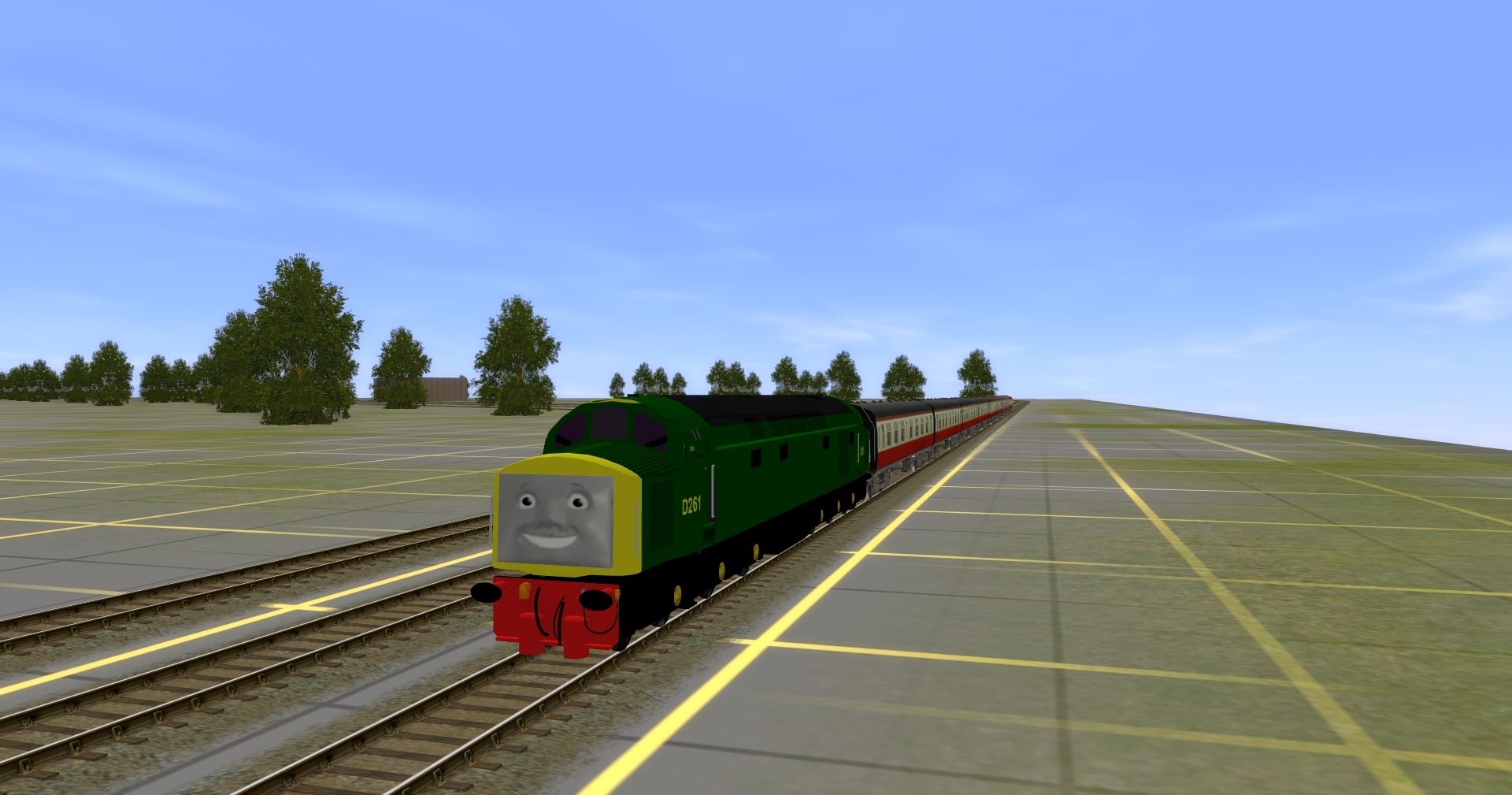 Posted by: Cam08 | Posted:2023-08-27 00:57:44 Caption: Tags: Trainz: A New Era, Dan Snell's Layout (Trainz Style), Class 40/D261, BR Mk1 CK Carmine, BR Mk1 BSO Carmine