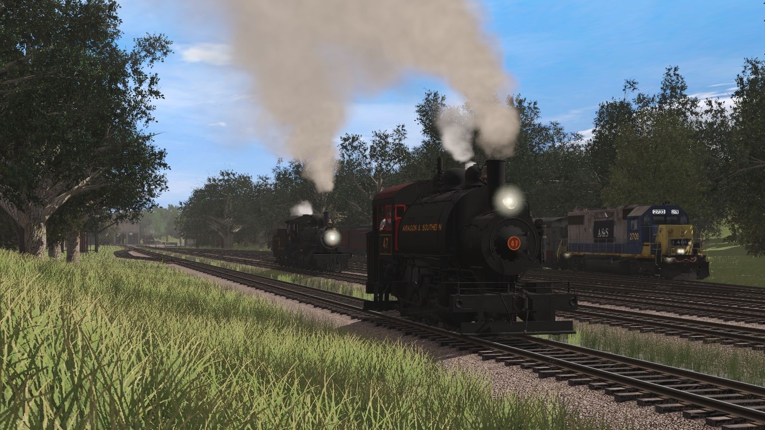 Tags: Trainz Railroad Simulator 2019, Aragon & Southern, Main Session, A&S 0-6-0T #47, A&S GP38-2 YN2, FCSR 85 Engine, FCSR RS1 200, A&S RS1, A&S Hi-Rail No.1, A&S G16a Engine, A&S Baldwin S12 #22, NKP Mikado Engine V1, A&S O1a #4963, A&S 31 Engine
