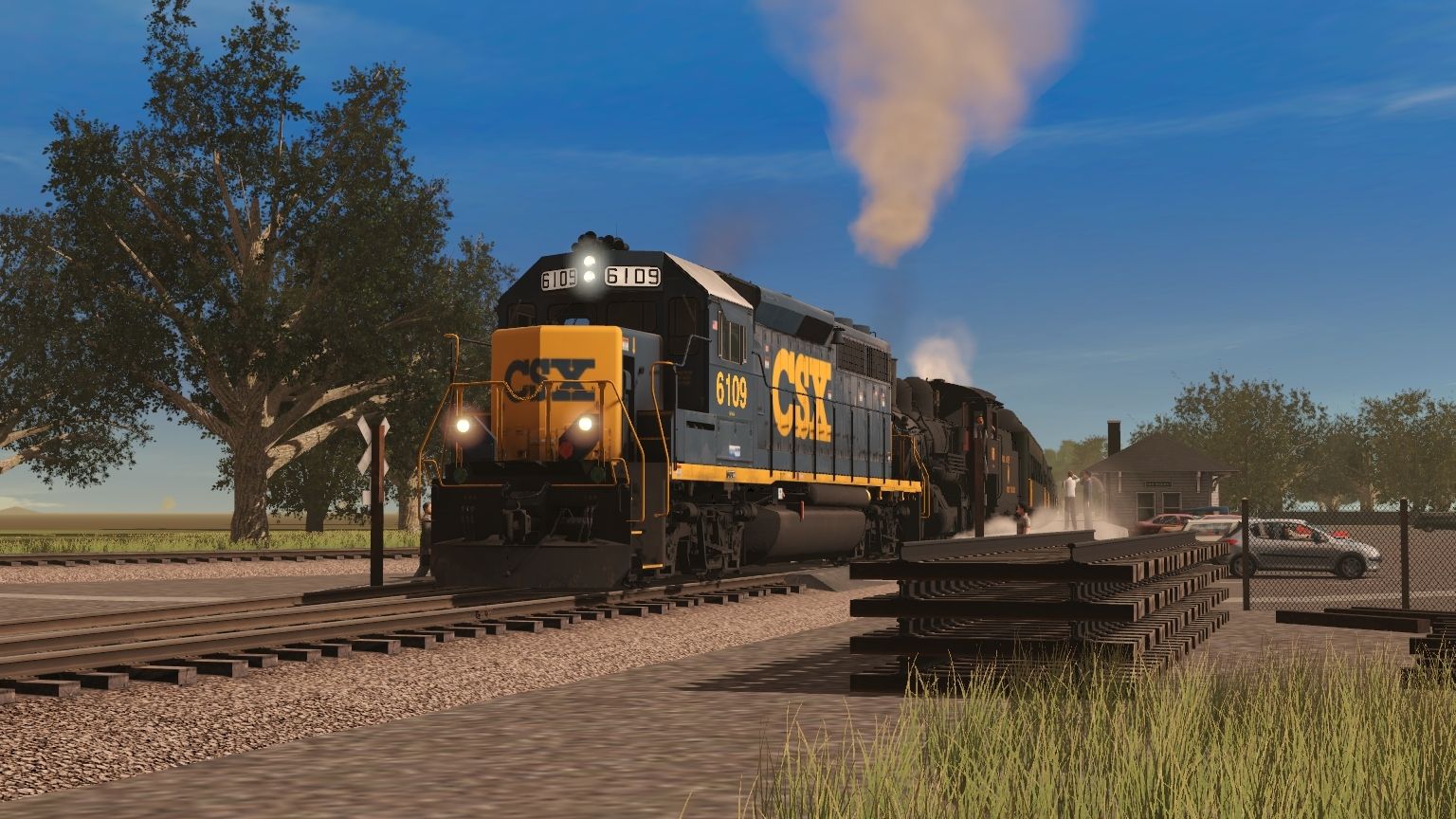 Tags: Trainz Railroad Simulator 2019, Aragon & Southern, Main Session, CSX GP40-2 YN3, FCSR 85 Engine, FCSR 85 Tender, FCSR Coach V2, FCSR Coach V1, FCSR Coach V3, FCSR Coach V4, FCSR Combine, FCSR Open Air Gondola, FCSR Observation Summit View