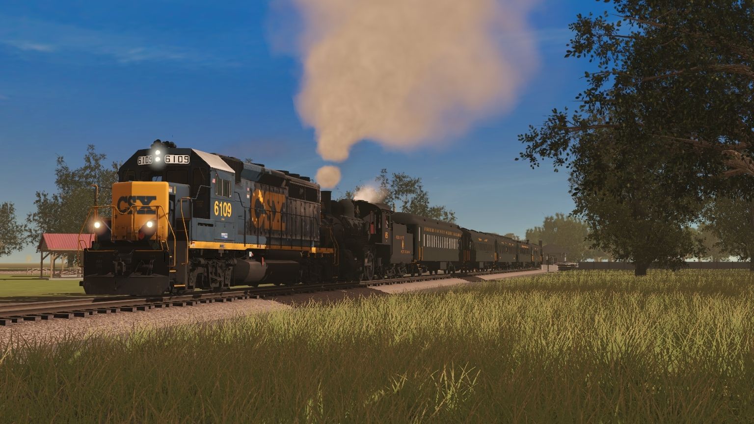 Tags: Trainz Railroad Simulator 2019, Aragon & Southern, Main Session, CSX GP40-2 YN3, FCSR 85 Engine, AMTK P42DC ph V, FCSR 85 Tender, FCSR Coach V2, FCSR Coach V1, FCSR Coach V3, FCSR Coach V4, FCSR Combine, FCSR Open Air Gondola, FCSR Observation Summit View