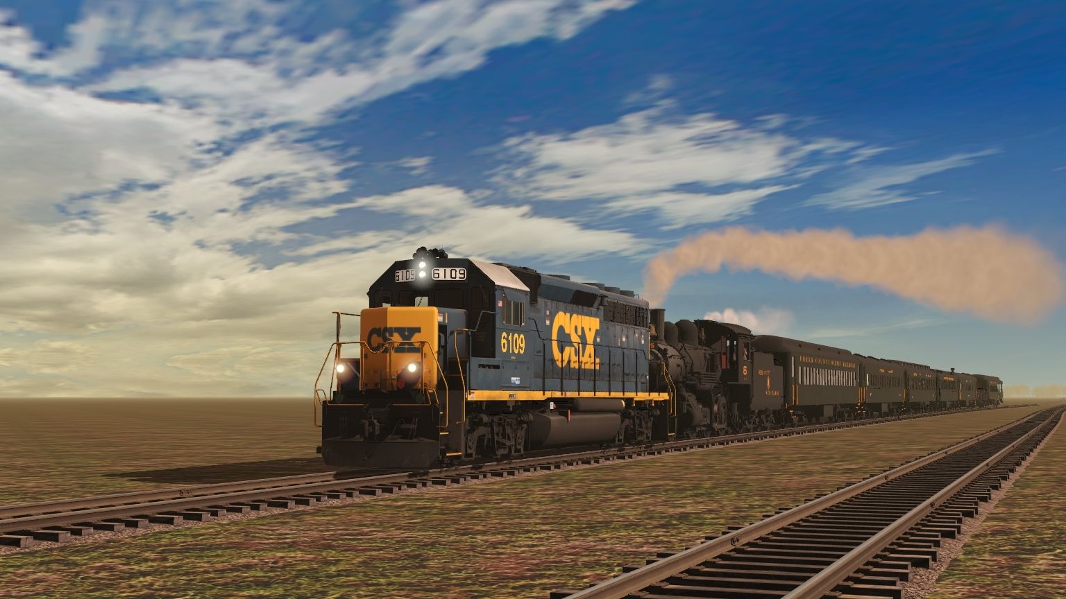 Tags: Trainz Railroad Simulator 2019, Aragon & Southern, Main Session, CSX GP40-2 YN3, FCSR 85 Engine, FCSR 85 Tender, FCSR Coach V2, FCSR Coach V1, FCSR Coach V3, FCSR Coach V4, FCSR Combine, FCSR Open Air Gondola, FCSR Observation Summit View