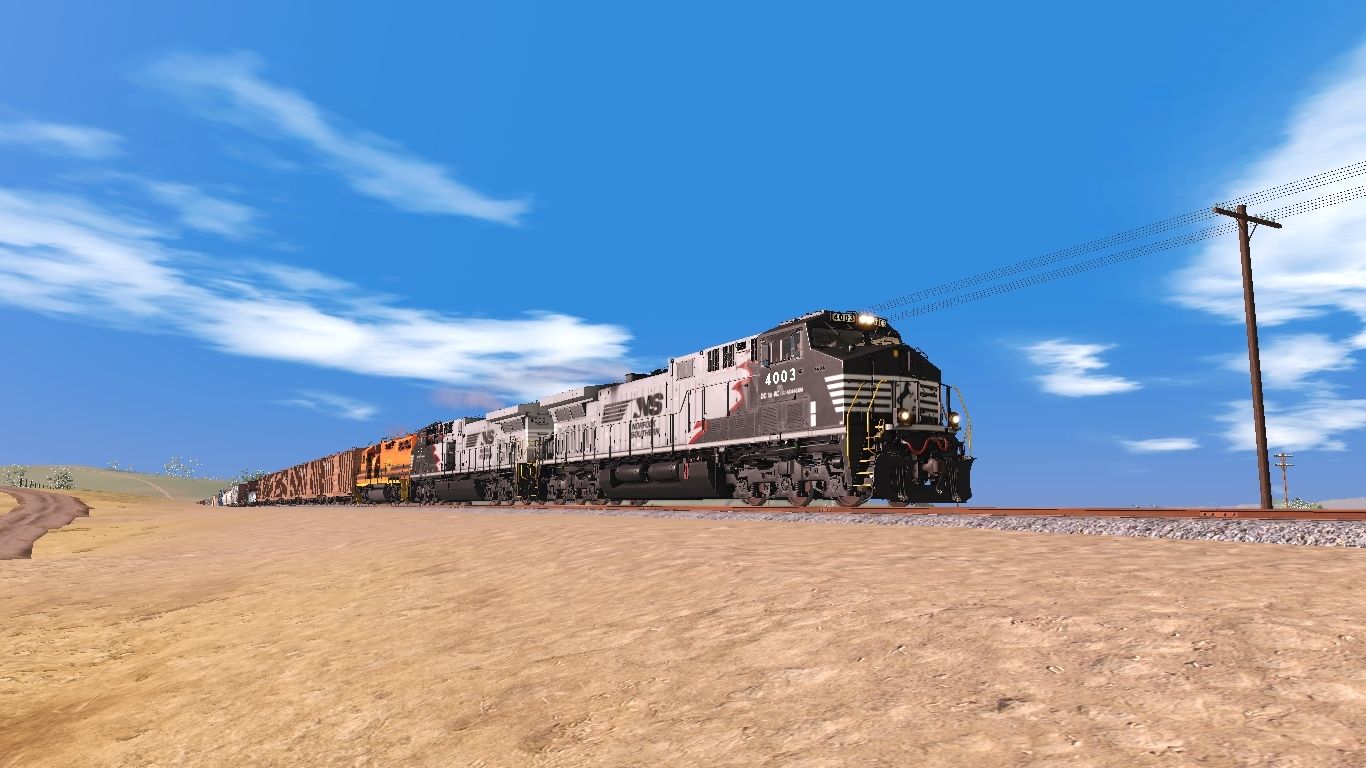Tags: Trainz Railroad Simulator 2022, Bairnsdale to Orbost Line C1970-80s, Default, NS AC44C6M Red Mane, GP38-3 MMID 2061, NS P-S 50_6ft Waffle Boxcar, NS G72 Gondola, NOKL 73ft Centerbeam (safety stripes), NP Evans Covered Hopper, MP (Dirty) Cylindrical Hopper, MP/UP (Dirty) Cylindrical Hopper, JR 50ft Boxcar JKTX #3, JR Cylindrical Hoppern CSX dirty, ICE 50_6ft Boxcar 100017