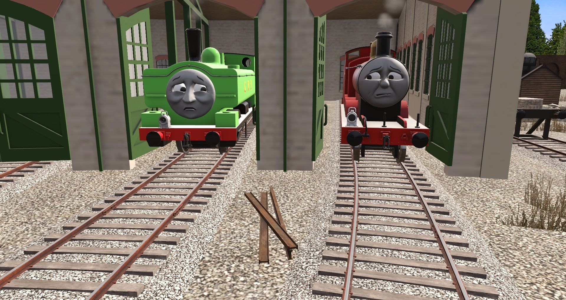Tags: Trainz Railroad Simulator 2019, TATMR - Tidmouth Sheds, TSI - James the Red Engine, TTTE - Duck (TATMR Livery), Flying Cam PBR, TSI - James' Tender, TSI - Thomas the Tank Engine, Engie's - TVS L&B 4T Open Wagon (TS19), Engie's - TVS GWR Cattle Van (TS19), Engie's - TVS LNER 12T Van (S2 - S8 TS19), TSI - Sodor Works Unit Coach (TRS19), Engie's - TVS SR CCT 4 Wheeled Van (TS19), Engie's - TVS 7 Plank Wagon (Classic TS19)