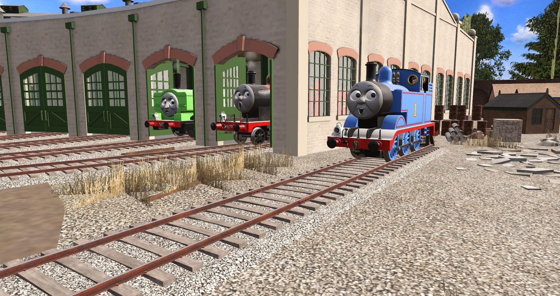 Tags: Trainz Railroad Simulator 2019, TATMR - Tidmouth Sheds, TSI - Thomas the Tank Engine, TTTE - Diesel 10, Flying Cam PBR, TSI - James the Red Engine, TTTE - Duck (TATMR Livery), TSI - James' Tender, Engie's - TVS L&B 4T Open Wagon (TS19), TSI - Sodor Works Unit Coach (TRS19), Engie's - TVS LNER 12T Van (S2 - S8 TS19), Engie's - TVS GWR Cattle Van (TS19), Engie's - TVS SR CCT 4 Wheeled Van (TS19)