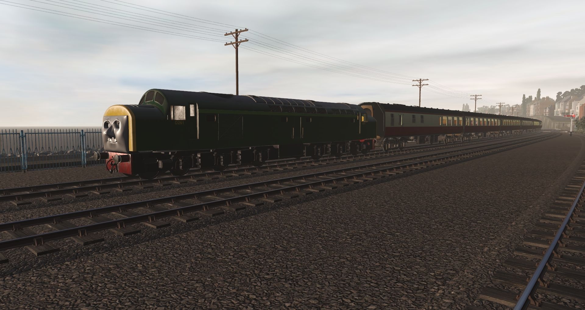 Tags: Trainz Railroad Simulator 2019, Cornish Mainline and Branches - TRS19, Mainline Passenger Service, TTTE - Class 40, GWR King George V, BR Mk1 RB Carmine, BR Mk1 RFO Carmine, BR Mk1 SK Carmine, BR Mk1 FK Carmine, BR Mk1 SO Carmine, BR Mk1 BG Carmine, BR Stanier BTK, BR Stanier FK, BR Stanier TO