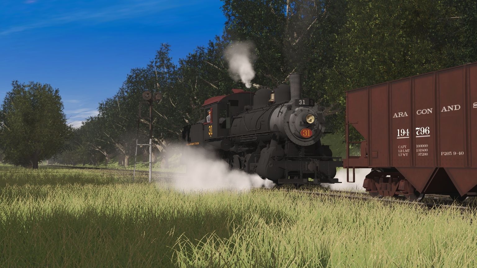 Tags: Trainz Railroad Simulator 2019, Aragon & Southern, Main Session, A&S 31 Engine, A&S Ex-PRR H21a Hopper, A&S Silver Coach, A&S Small Aux Tender, A&S 31 Tender, A&S Aux Tender, N&W C-31P Caboose #518631, SCL M-6 Caboose #01061, MILW Caboose (Bay Window), TRR transfer caboose, D&H Caboose Northeastern ex-LV