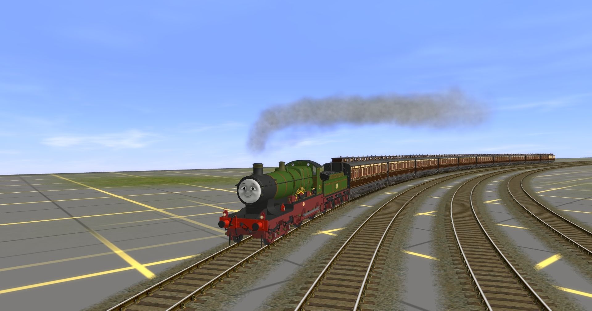 Tags: Trainz: A New Era, Dan Snell's Layout (Trainz Style), Lachlan - RWS City of Truro, Lachlan - RWS City of Truro's Tender, GWR bogie clerestory composite 3rd, GWR bogie clerestory brake 3rd