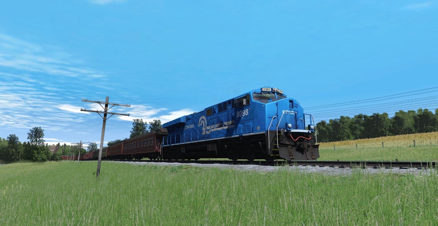 Tags: Trainz Railroad Simulator 2019, Tidewater Point Rail v3, Default, NS ES44AC CR Heritage 8098 (TS12), Conrail F8A 1506 (TS12), Conrail F8A 1505 (TS12), NS OCS Business Car 1 'Virginia, NS Business Car #42 (Fictional), Pullman Paul A Bert, Pullman Dover Harbor 10-1-2, PRR Buffet-Lounge-Sleeper #8404 'Catalpa Falls, PRR Kitchen-Dorm 4609, PRR P85A Coach, PRR P70 Coach 1702