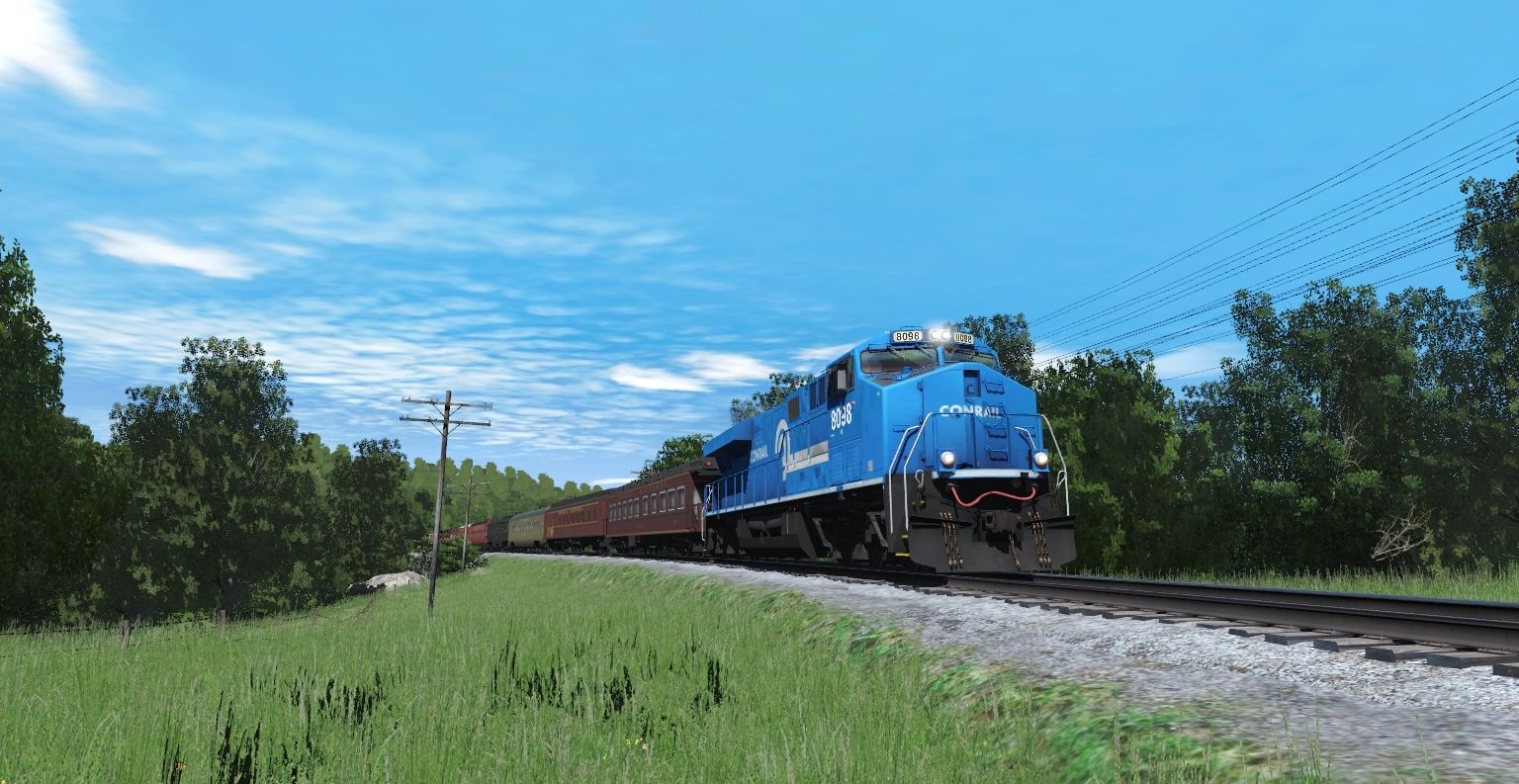 Tags: Trainz Railroad Simulator 2019, Tidewater Point Rail v3, Default, NS ES44AC CR Heritage 8098 (TS12), Conrail F8A 1506 (TS12), Conrail F8A 1505 (TS12), NS OCS Business Car 1 'Virginia, NS Business Car #42 (Fictional), Pullman Paul A Bert, Pullman Dover Harbor 10-1-2, PRR Buffet-Lounge-Sleeper #8404 'Catalpa Falls, PRR Kitchen-Dorm 4609, PRR P85A Coach, PRR P70 Coach 1702